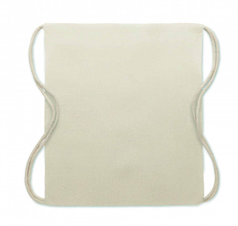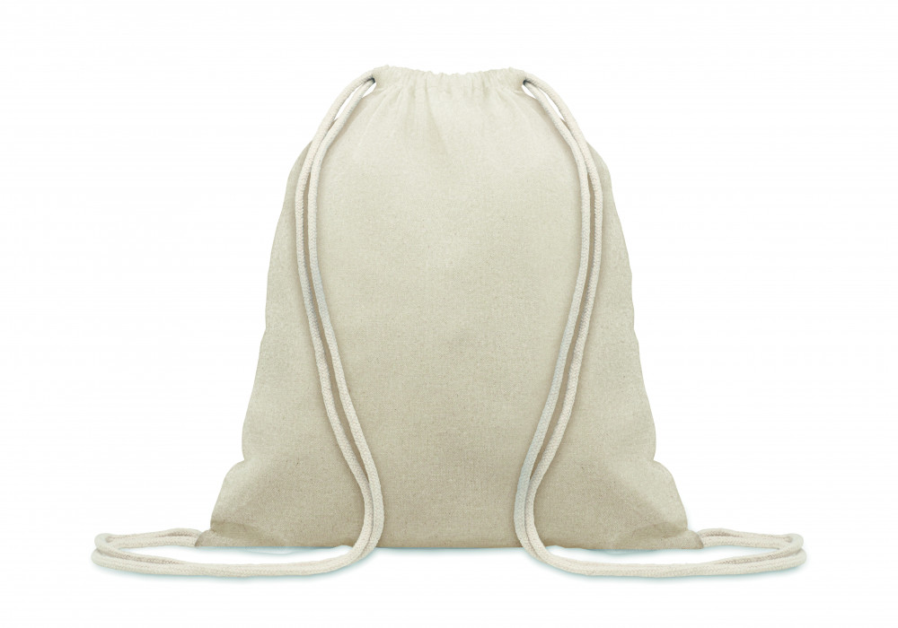 Húzózsinóros táska újrahasznosított pamutból 80% újrahasznosított pamut, 20% hagyományos pamut. 140 g/m² vastag anyag.