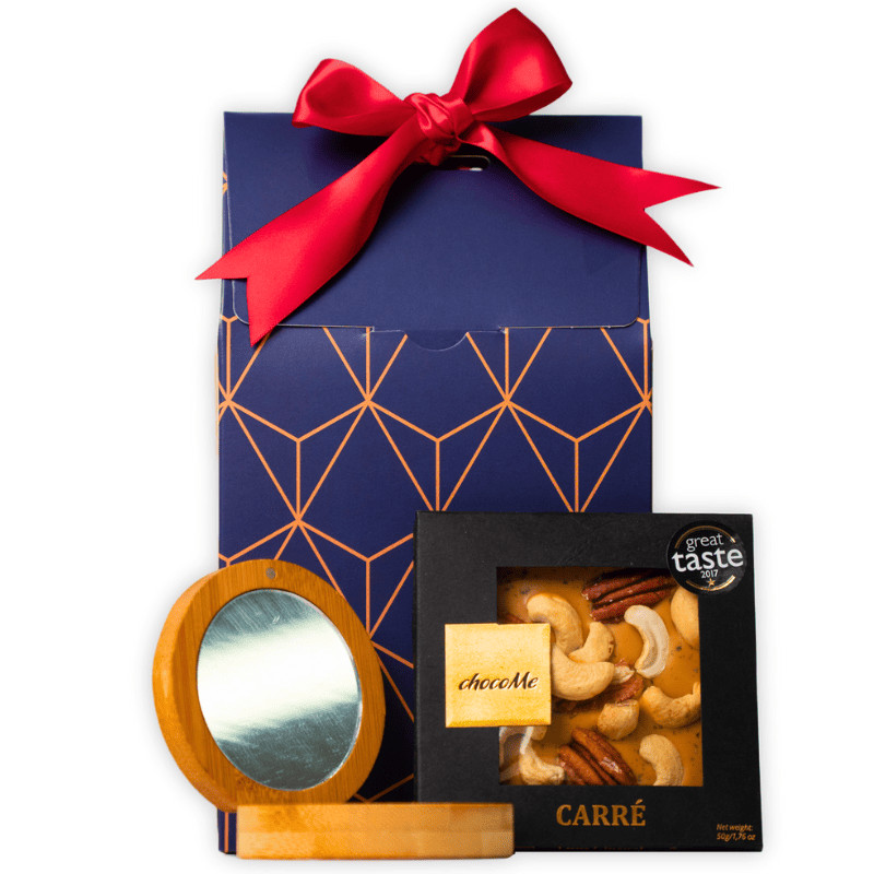 Egy kis énidő luxus kivitelben! A "Me Time Moments" csomagban a kézműves ChocoMe csokoládé mennyei ízei és egy elegáns bambusz ékszerdoboz találkoznak. Tökéletes ajándék azoknak, akik megérdemelnek egy kis kényeztetést és szépséget a mindennapokban.
