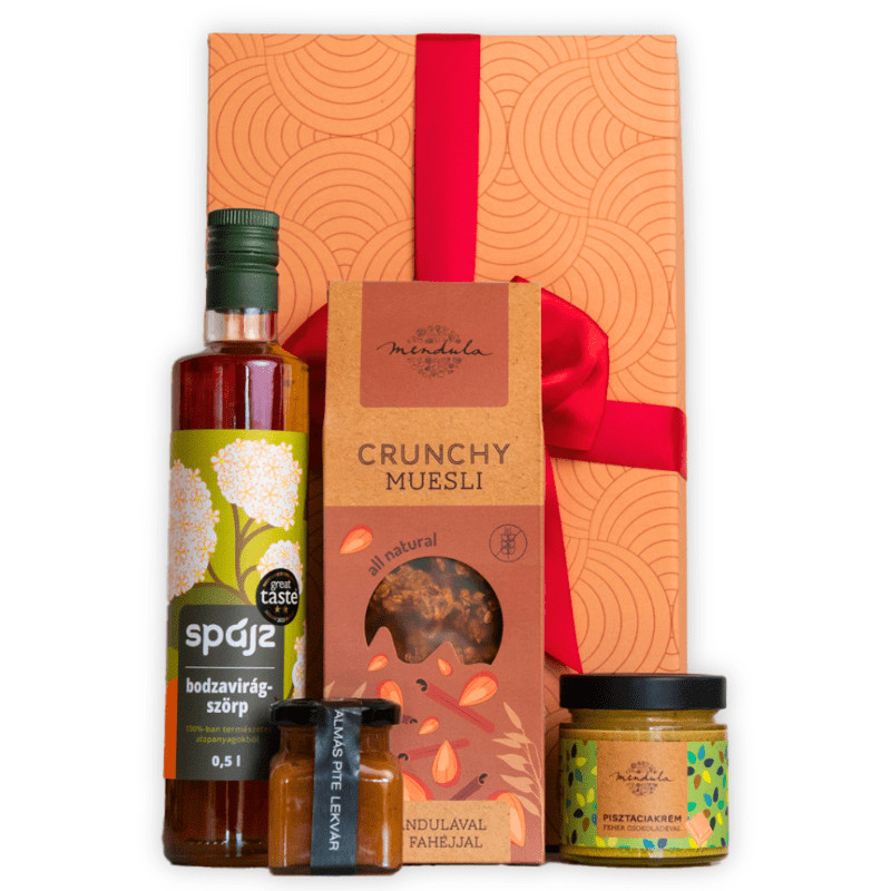 Varázsold ünnepivé a pillanatokat a "Mistletoe Magic" csomaggal! Az almáspite lekvár, a fehércsokoládés pisztácia krém, a kézműves bodzaszörp és a ropogós granola egyedi ízvilága tökéletes kiegészítője az ünnepi hangulatnak.