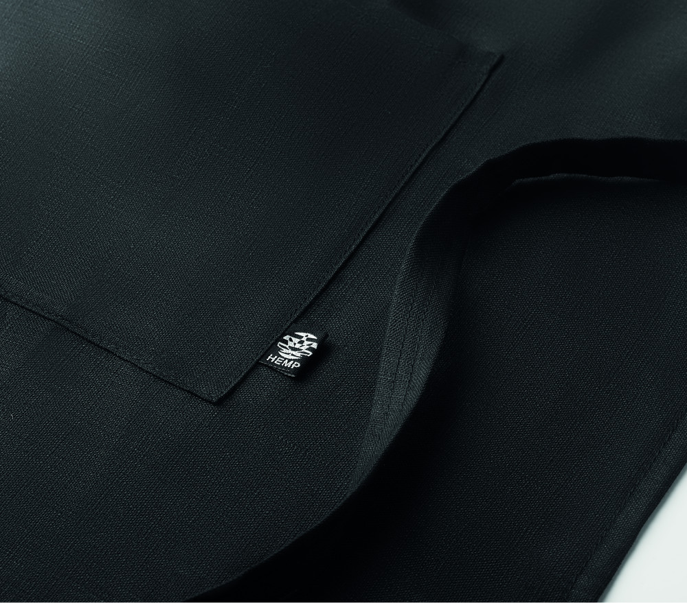 200 g vastag, 100% kenderszövet kötény, kettéosztott első nagy zsebbel.
