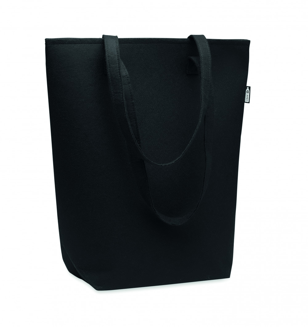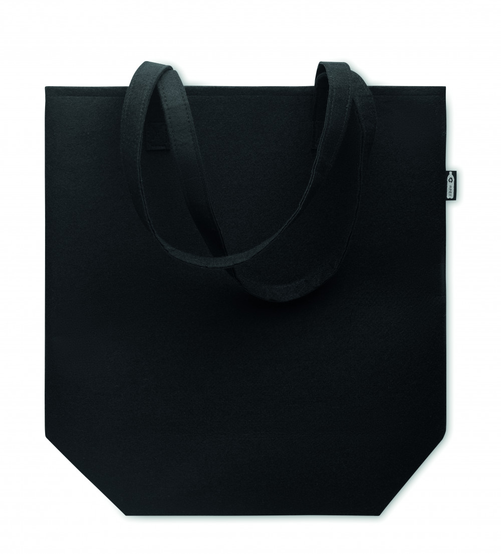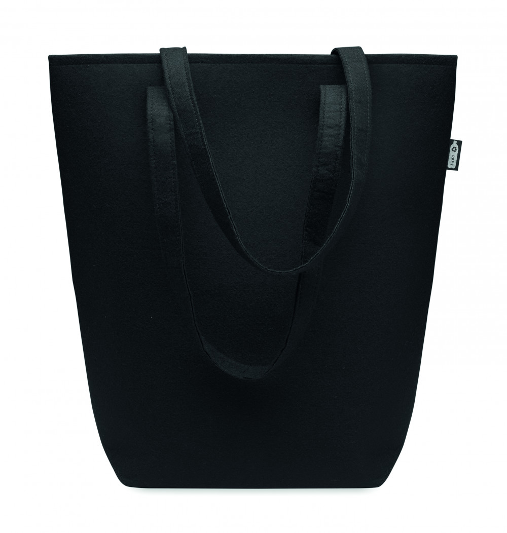 RPET filcből készült bevásárlótáska hosszú fülekkel. Filc vastagsága: 1 mm.