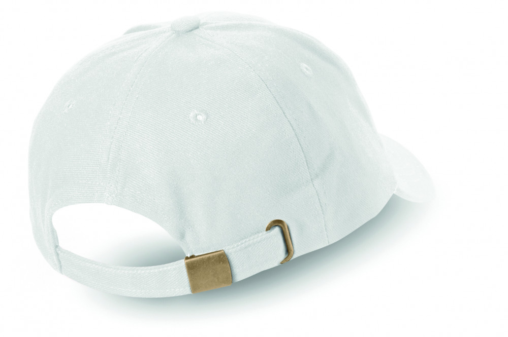 6 paneles baseball sapka, 260 g/m² vastag szálcsiszolt pamut anyagból, antikolt réz színű fém csattal záródó állítható pánttal. 6, színazonos hímzett szellőzőlyukkal. Méret 7 1/4.