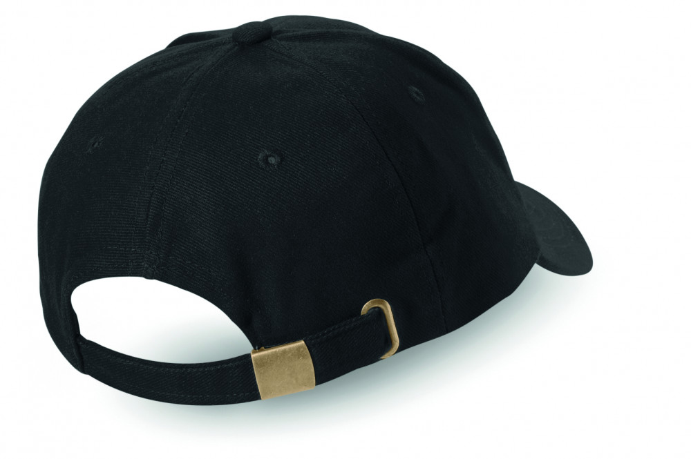 6 paneles baseball sapka, 260 g/m² vastag szálcsiszolt pamut anyagból, antikolt réz színű fém csattal záródó állítható pánttal. 6, színazonos hímzett szellőzőlyukkal. Méret 7 1/4.
