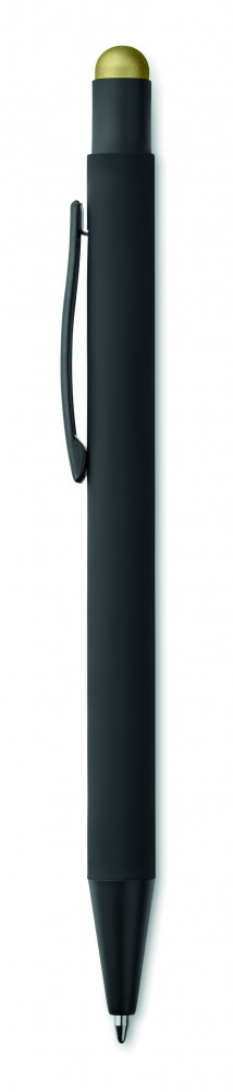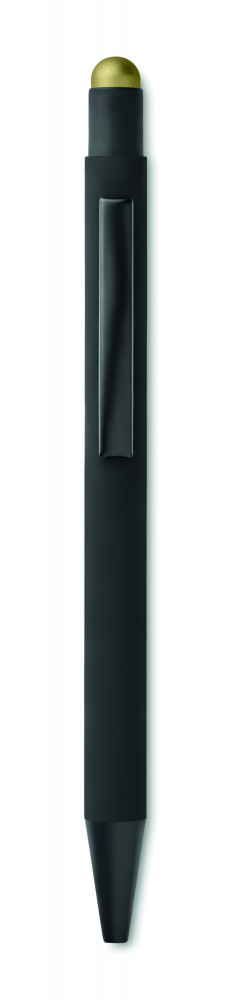 Alumínium érintőhegyes, nyomógombos golyóstoll. A tolltesten lévő rétegnek köszönhetően a gravírozás az érintőhegy színével egyezik meg. Kéken író betéttel.