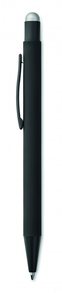 Alumínium érintőhegyes, nyomógombos golyóstoll. A tolltesten lévő rétegnek köszönhetően a gravírozás az érintőhegy színével egyezik meg. Kéken író betéttel.