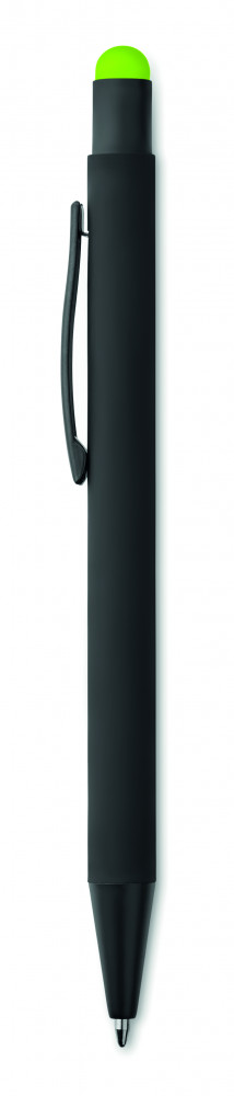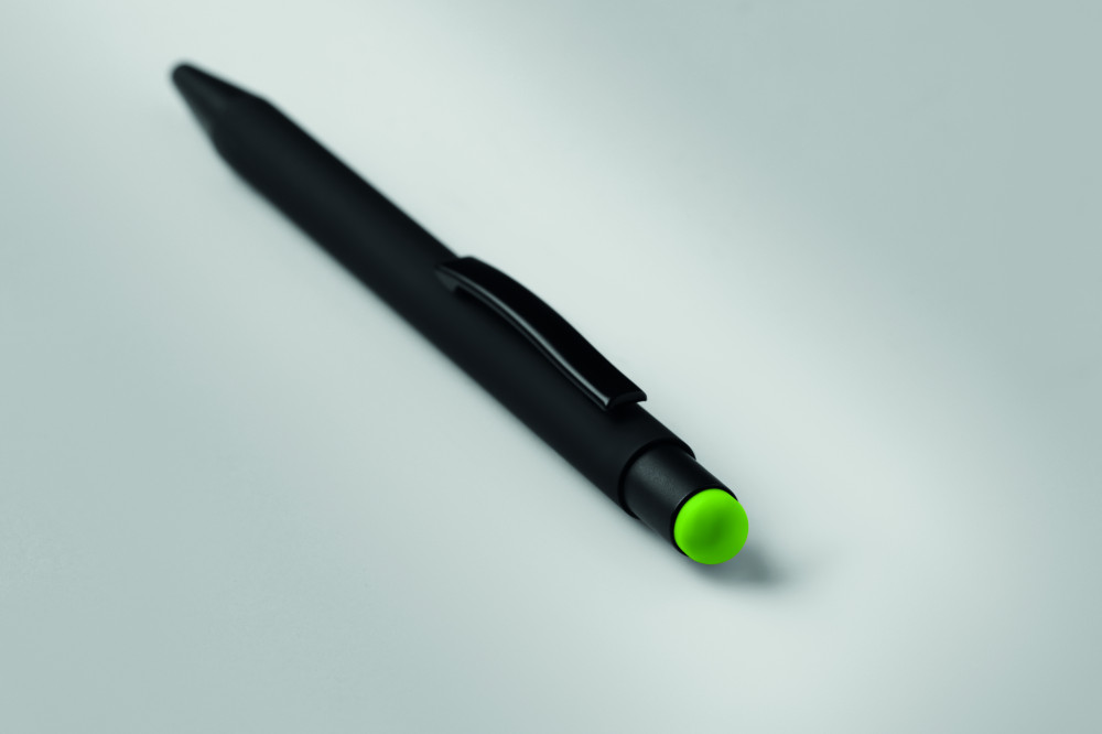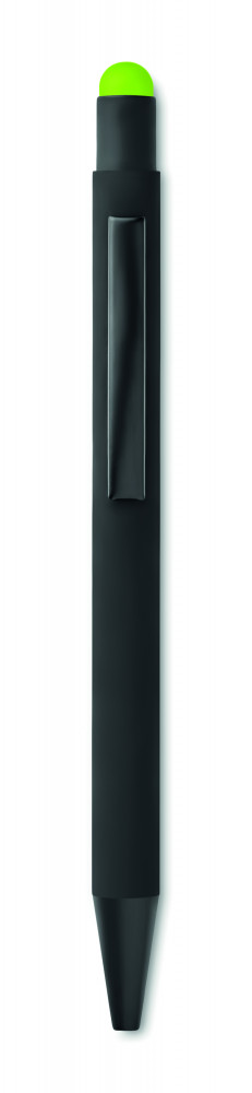 Alumínium érintőhegyes, nyomógombos golyóstoll. A tolltesten lévő rétegnek köszönhetően a gravírozás az érintőhegy színével egyezik meg. Kéken író betéttel.