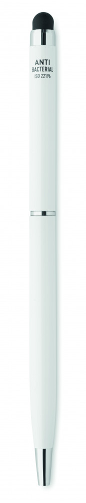 Csavarmechanikás érintőhegyes golyóstoll alumíniumból, antibakteriális tolltesttel, fényes króm csíptetővel. ISO 22196. Kéken író betét.