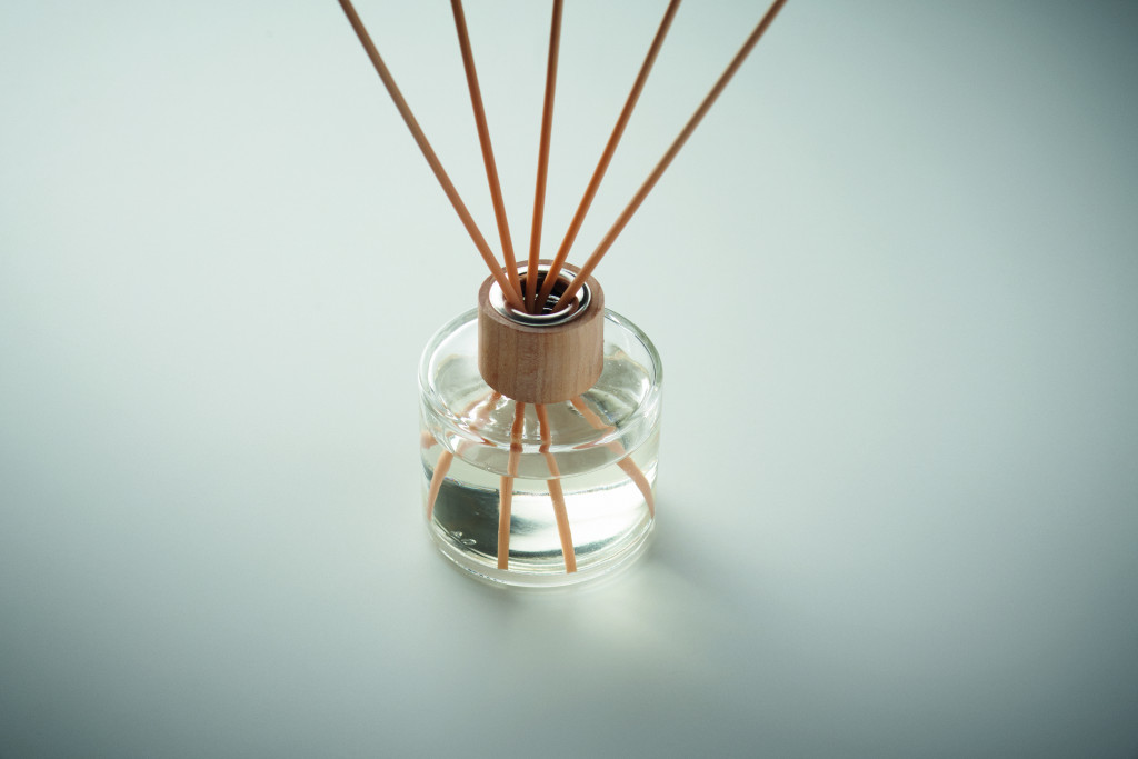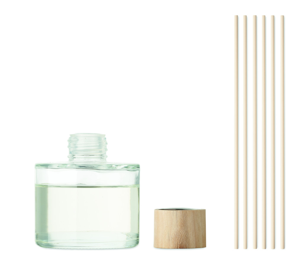 Illat diffúzor 6 nádpálcikával. Üveg fiola fa fedéllel. Illatanyag: vanília. Űrtartalom: 100 ml.