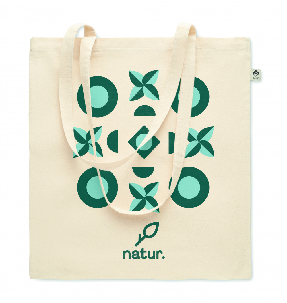Biopamut bevásárlótáska hosszú fülekkel. 180 g vastag anyag.