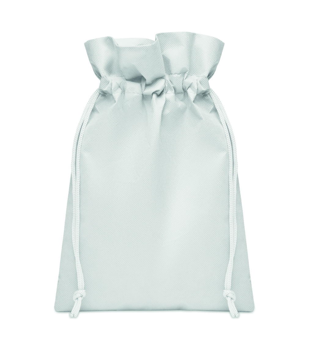 Kis zsinóros ajándéktasak RPET 80 g/m² nemszőttes anyagból. Méret kb. 20x30 cm.