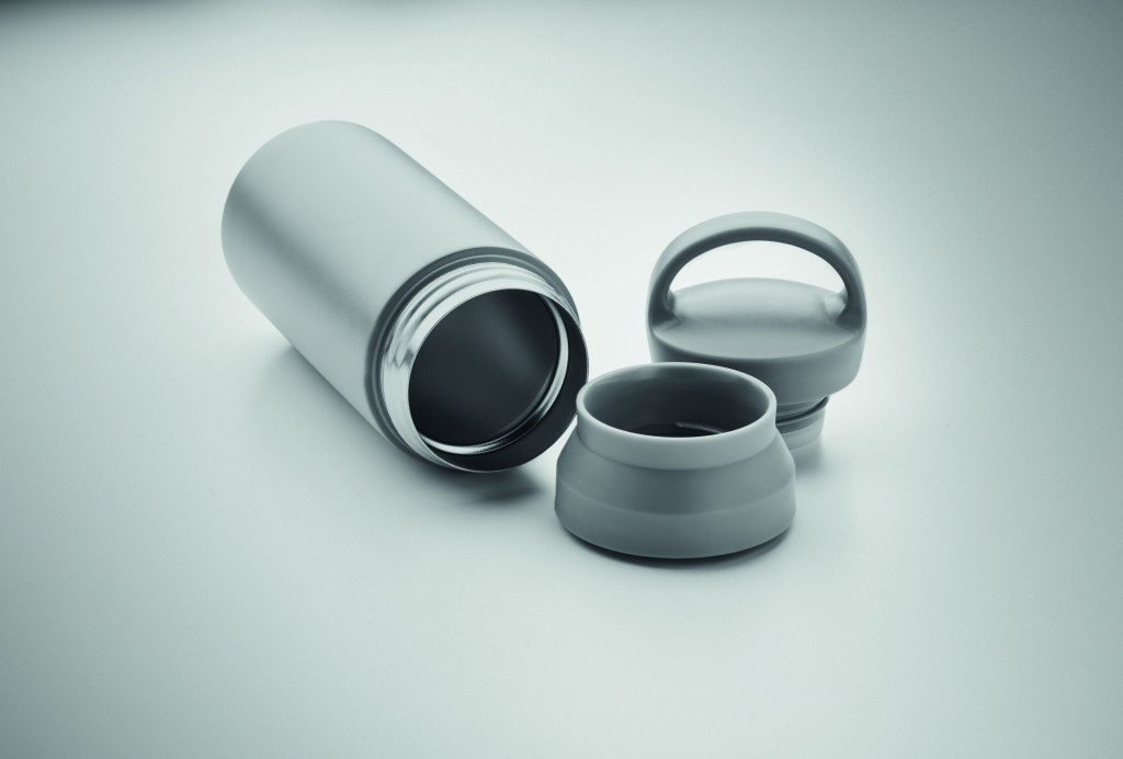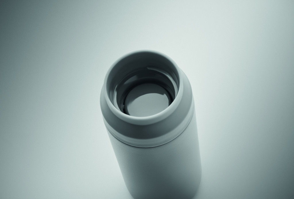 Duplafalú termoszpalack újrahasznosított rozsdamentes acélból (90% újrahasznosított rozsdamentes acél és 10% rozsdamentes acél), PP dupla fedeles nyílással a könnyű tisztítás érdekében. Űrtartalom: 320 ml.