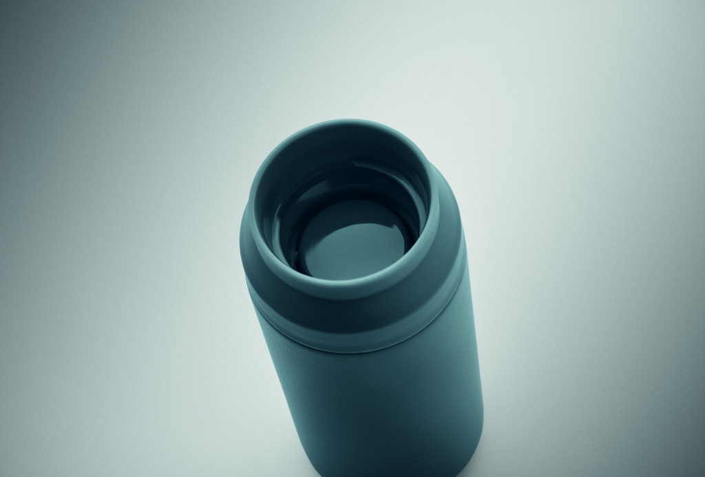 Duplafalú termoszpalack újrahasznosított rozsdamentes acélból (90% újrahasznosított rozsdamentes acél és 10% rozsdamentes acél), PP dupla fedeles nyílással a könnyű tisztítás érdekében. Űrtartalom: 320 ml.