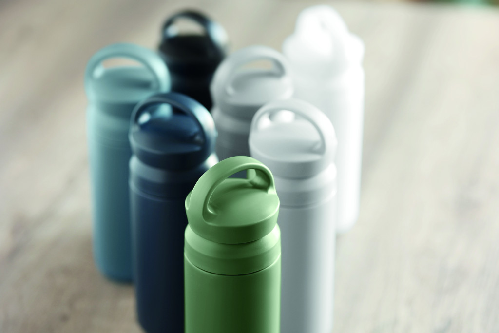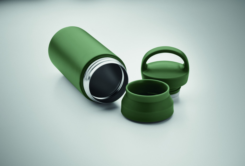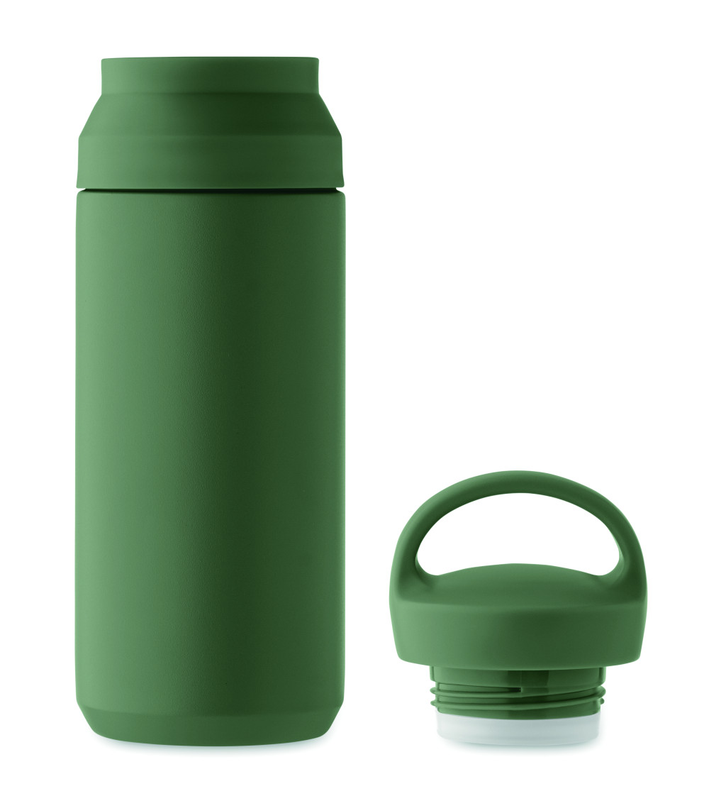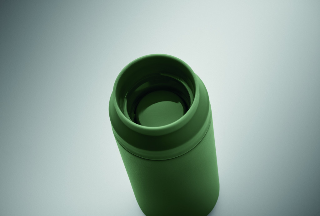 Duplafalú termoszpalack újrahasznosított rozsdamentes acélból (90% újrahasznosított rozsdamentes acél és 10% rozsdamentes acél), PP dupla fedeles nyílással a könnyű tisztítás érdekében. Űrtartalom: 320 ml.