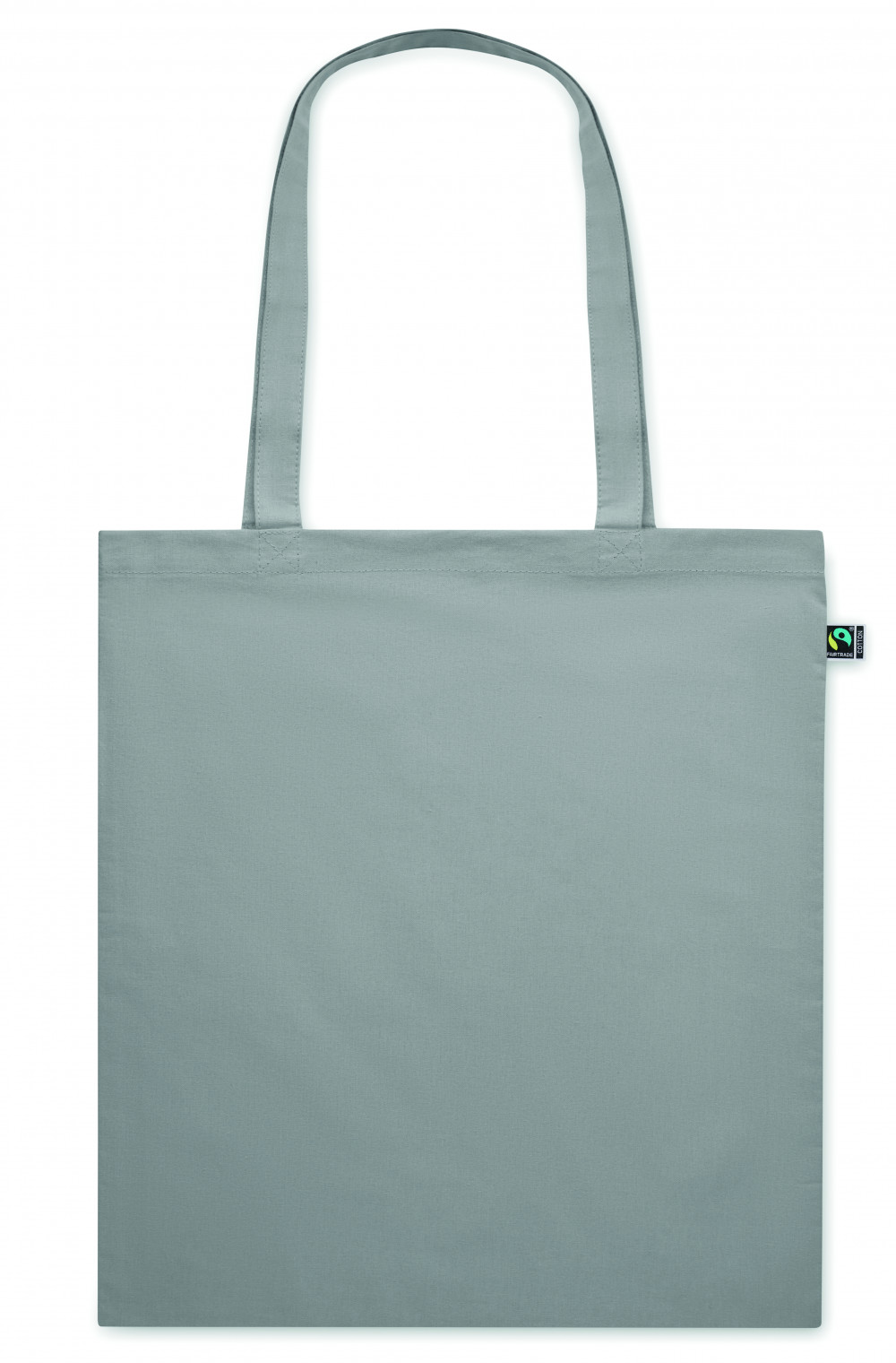 Festett Fairtrade pamutból készült bevásárlótáska hosszú fülekkel. 140 g/m² vastag anyag. Ez a termék OEKO-TEX® STANDARD 100 tanúsítvánnyal rendelkezik.