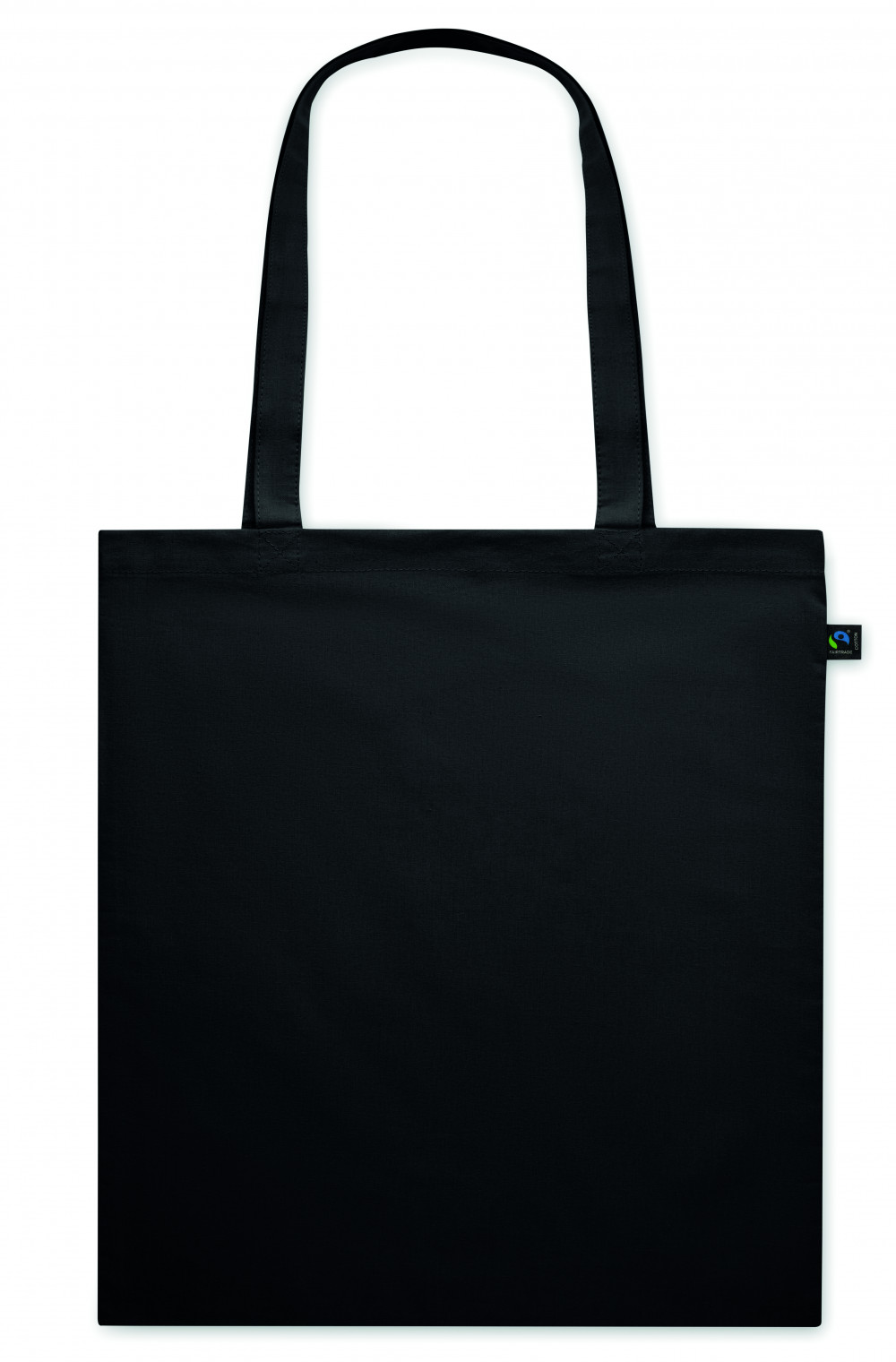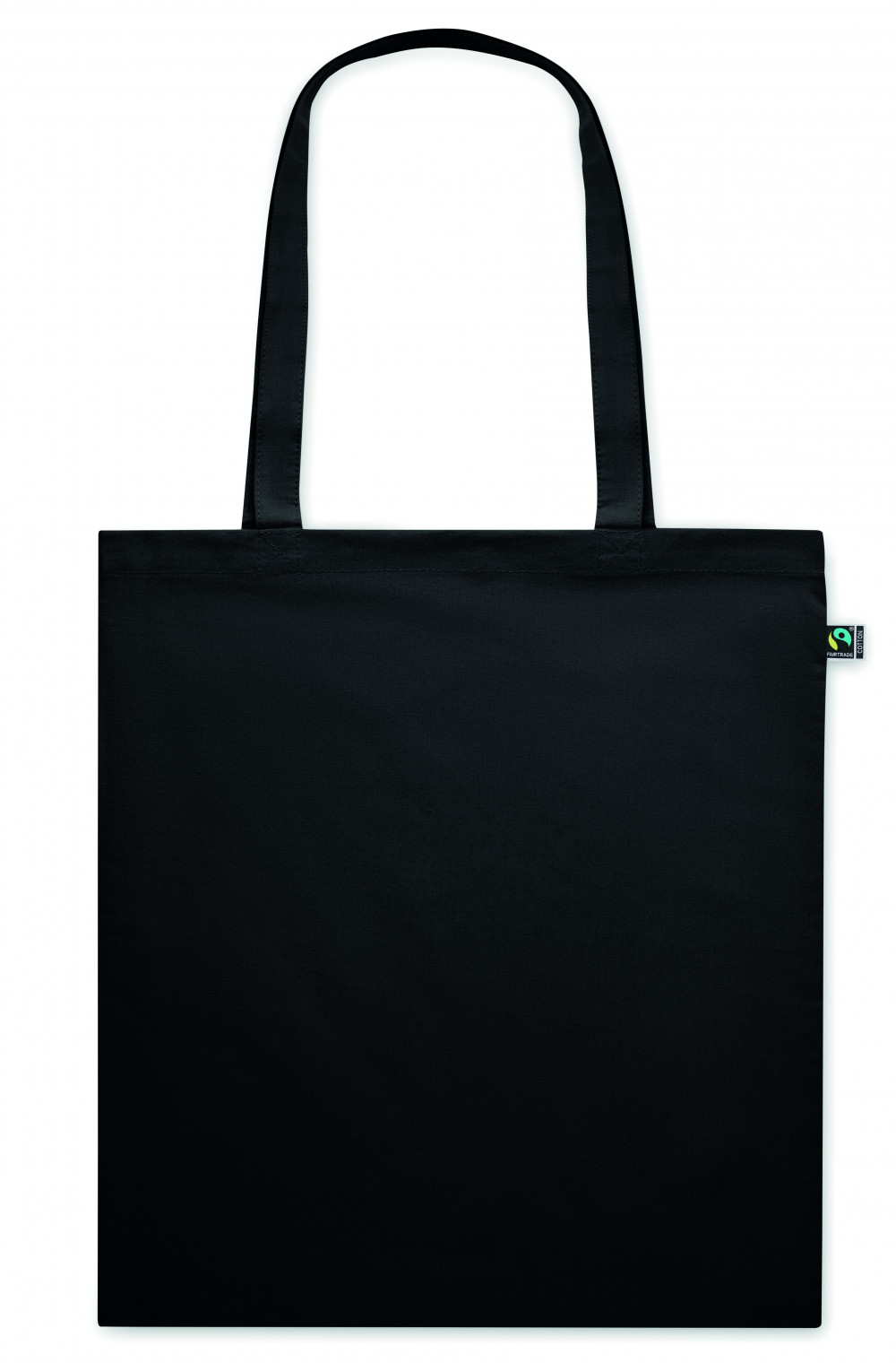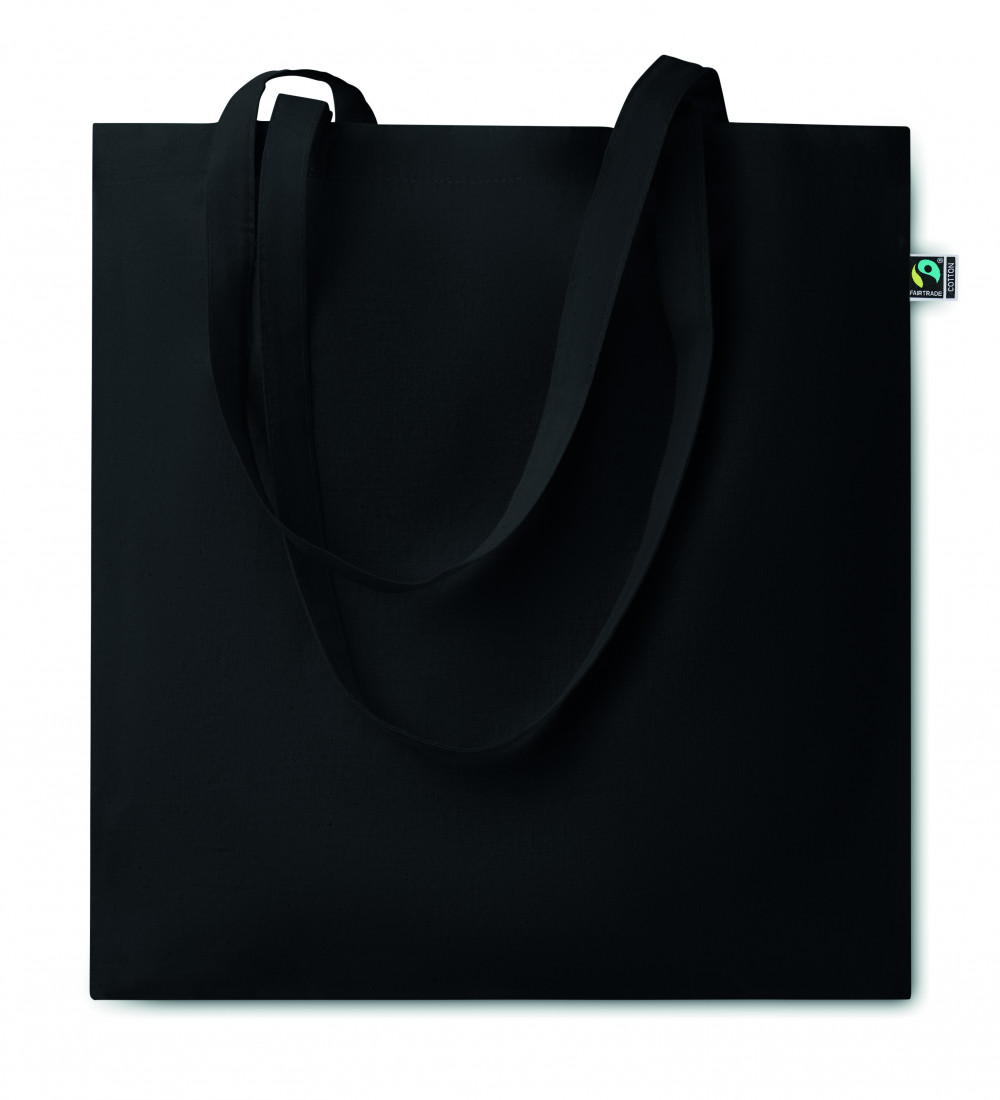 Festett Fairtrade pamutból készült bevásárlótáska hosszú fülekkel. 140 g/m² vastag anyag. Ez a termék OEKO-TEX® STANDARD 100 tanúsítvánnyal rendelkezik.