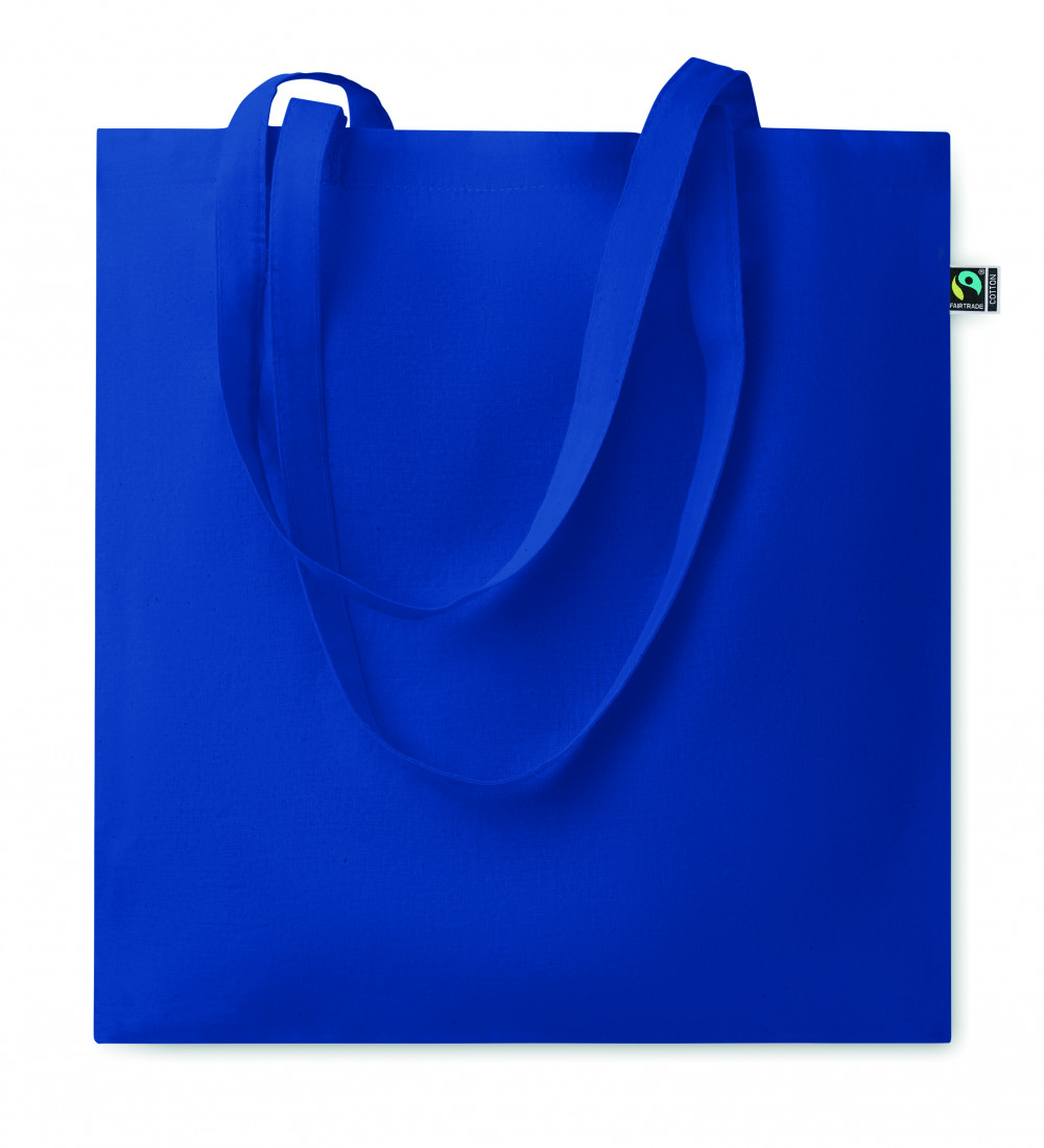 Festett Fairtrade pamutból készült bevásárlótáska hosszú fülekkel. 140 g/m² vastag anyag. Ez a termék OEKO-TEX® STANDARD 100 tanúsítvánnyal rendelkezik.