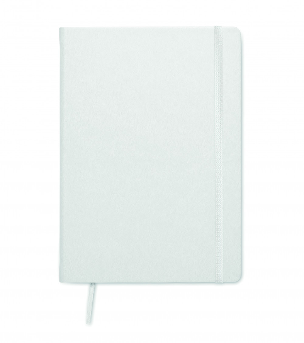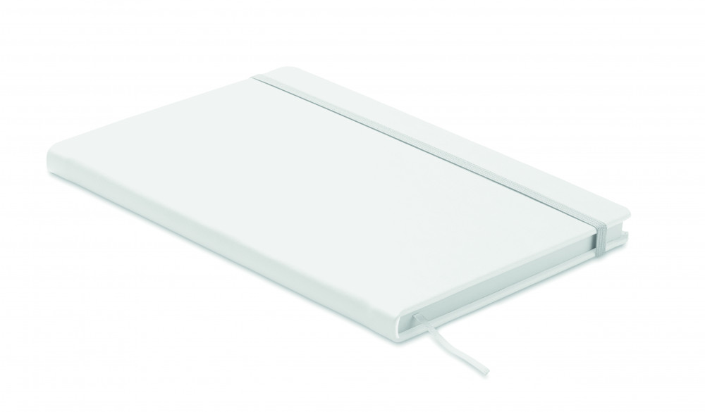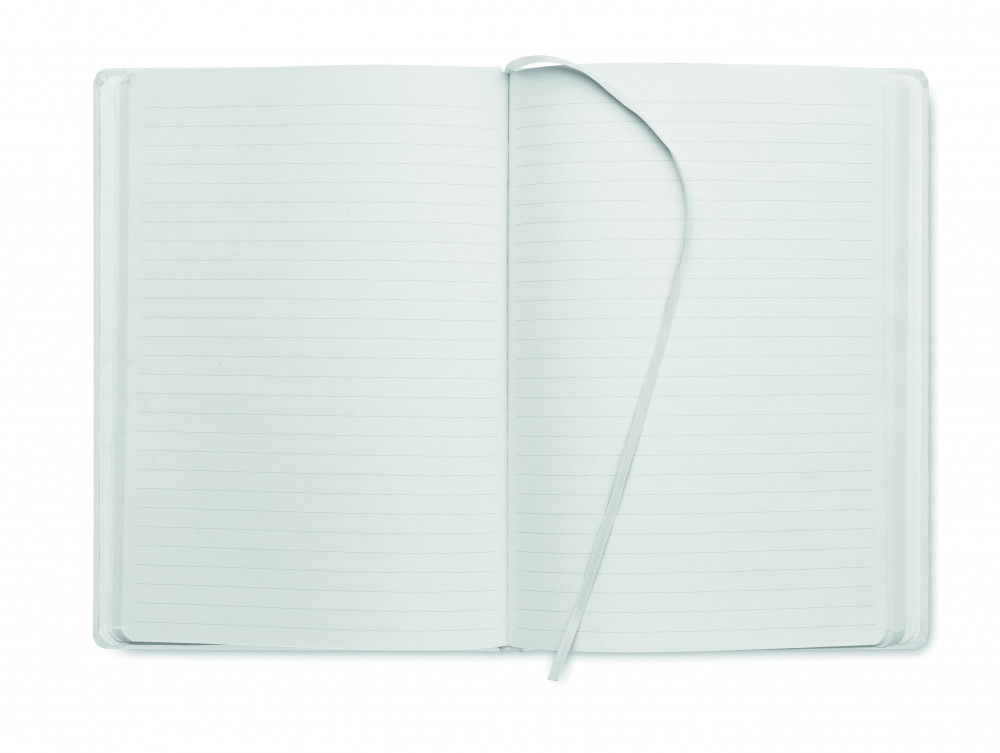 A5 jegyzetfüzet PU keménytáblás borítóval. Cérnafűzött. 200 vonalas oldal (100 lap) 80 g vastag újrahasznosított papírból. Színben illeszkedő elasztikus zárópánt és könyvjelző szalag. EU-ban gyártva.