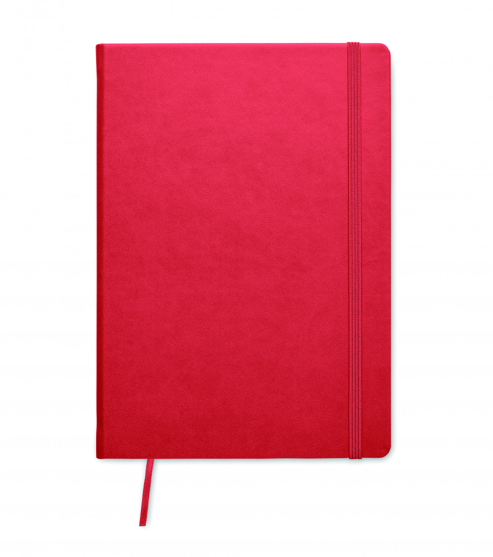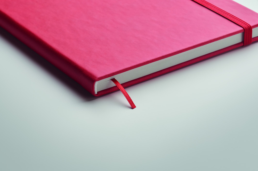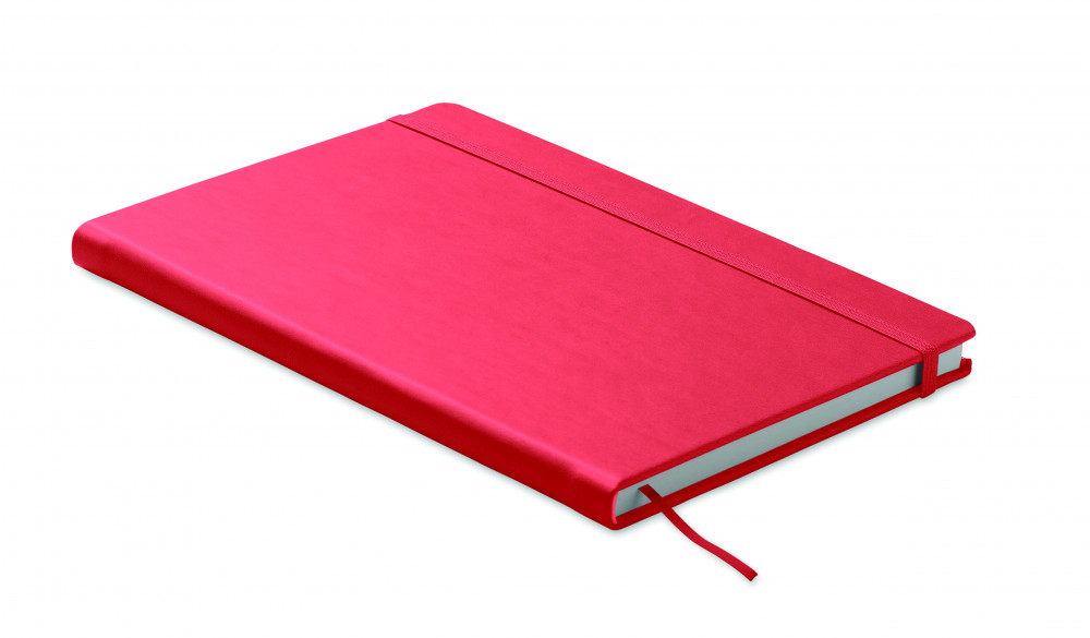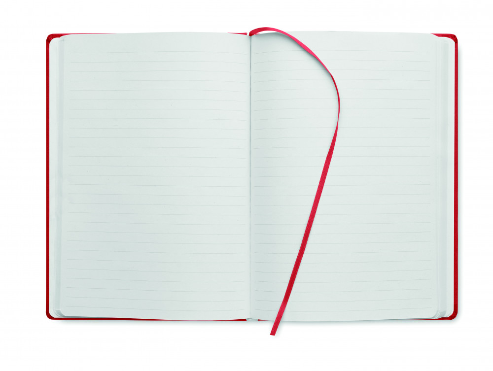 A5 jegyzetfüzet PU keménytáblás borítóval. Cérnafűzött. 200 vonalas oldal (100 lap) 80 g vastag újrahasznosított papírból. Színben illeszkedő elasztikus zárópánt és könyvjelző szalag. EU-ban gyártva.