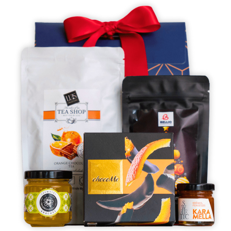 Az Orange Garden ajándékcsomag olyan ízek varázslatos ötvözete, amely elrepít egy napsütötte citrusligetbe. A kézműves lágy karamell és hazai akácméz tökéletesen kiegészíti a narancsos csokoládés teát, míg a Chocome étcsokoládéval bevont kandírozott narancshéj fahéjas-szegfűszeges fűszerezése megkoronázza az élményt. A narancsos keksz ízű kávéval pedig minden korty egy újabb utazás a napfényes citrusok világába. Ideális választás a citrusimádóknak és azoknak, akik egy kis édes menedéket keresnek a mindennapokban!