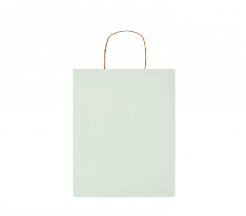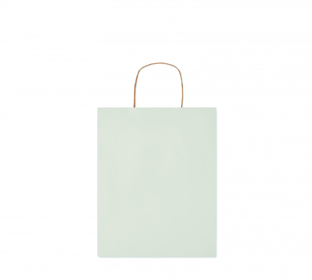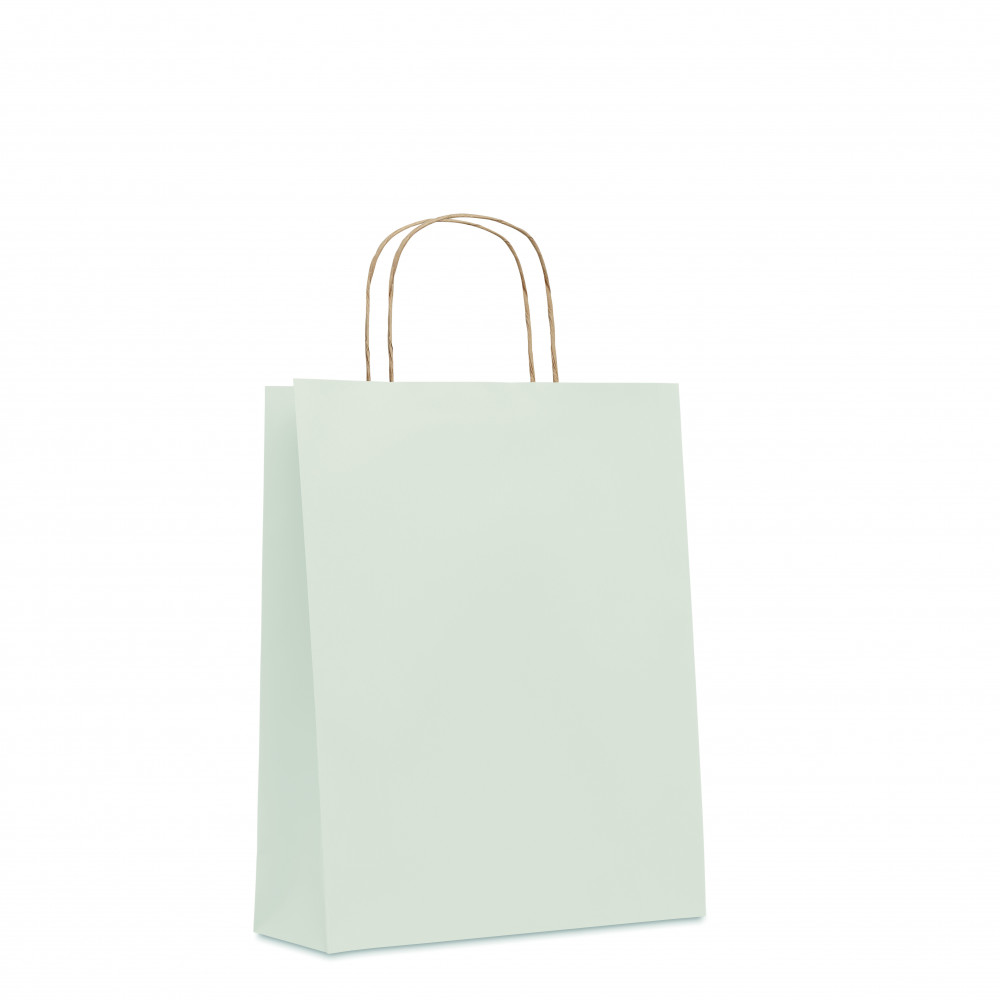 Közepes papír ajándéktasak. Egy papírtáska remek módja az ajándék tetszetős csomagolásának és átadásának. Akár kisebb hordtáskaként is használható. 90 g. vastag papírból. FSC®-certified | FSC MIX, P5.3, FSC-C213206