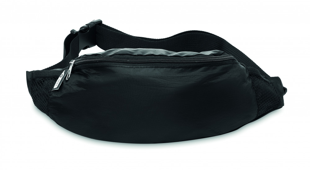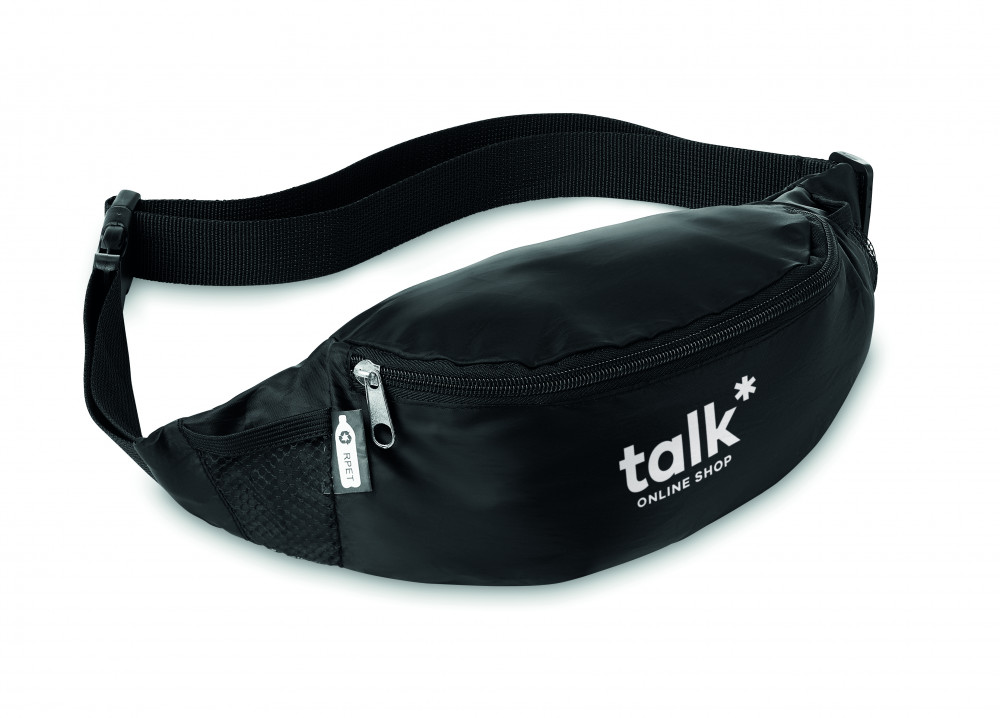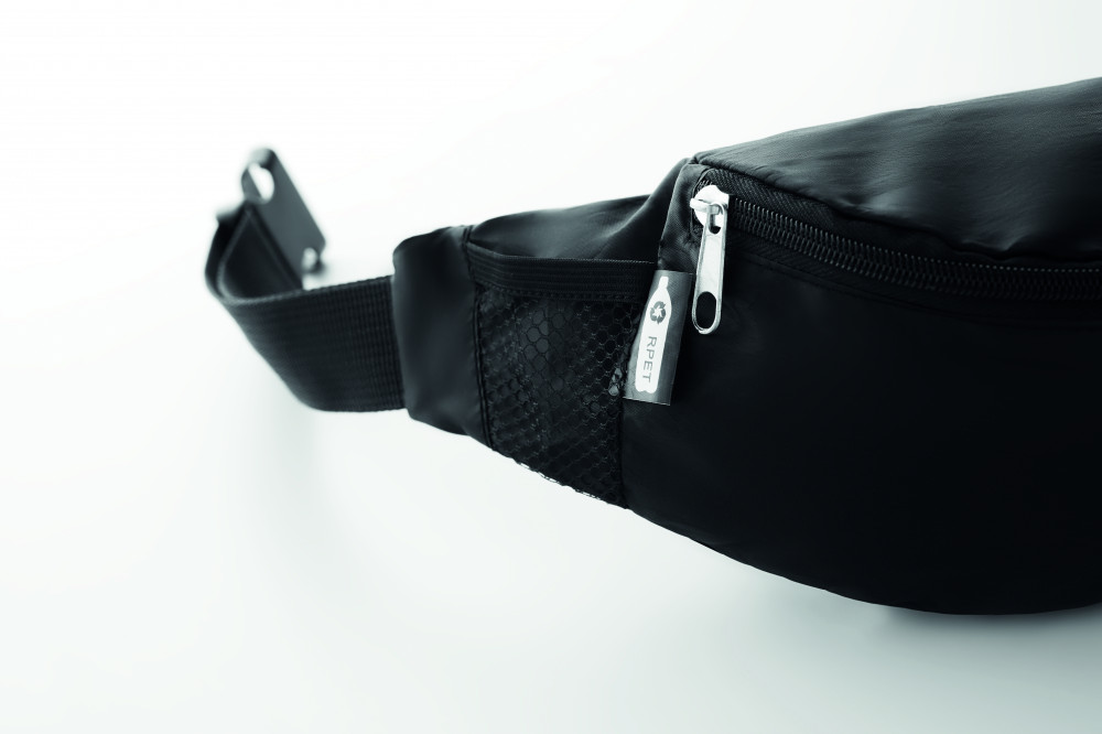 210D RPET övtáska, cipzáras fő rekesszel, állítható derékpánttal.