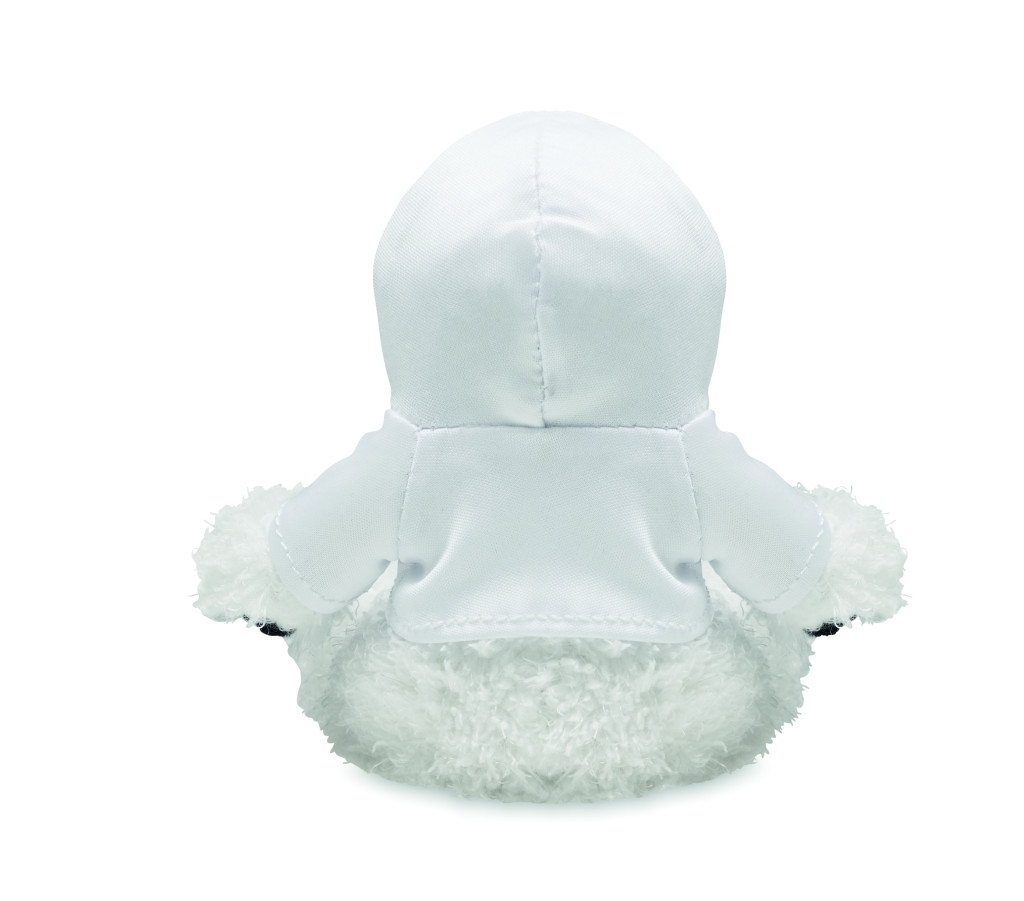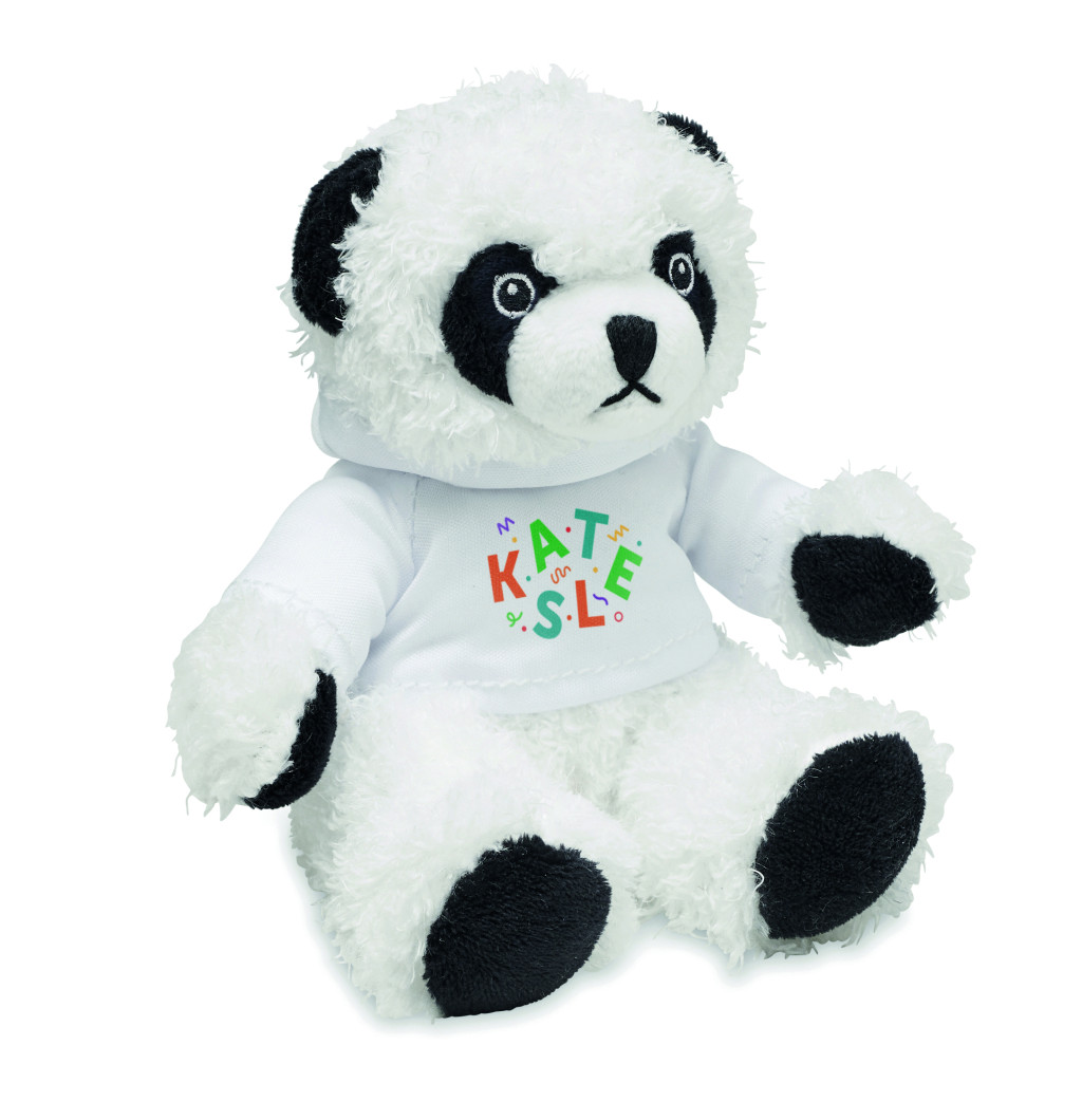 Kapucnis pulóvert viselő plüss panda. A pulóver ideális szublimációs nyomtatáshoz.