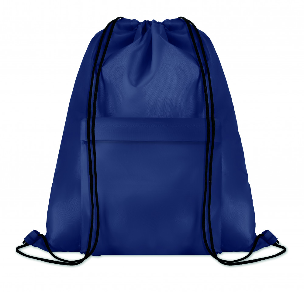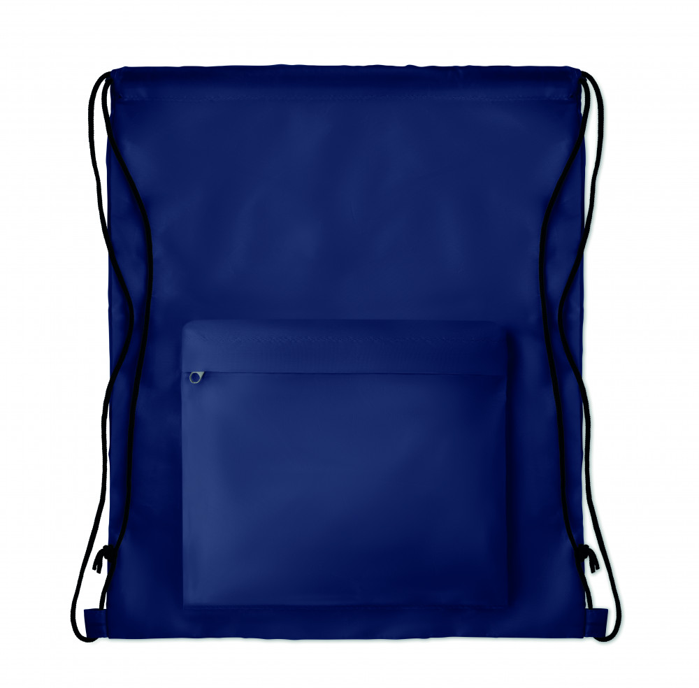 Nagy 210D poliészter tornazsák cipzározható elülső zsebbel. A szublimációs nyomtatás csak a fehér színű terméken érhető el.