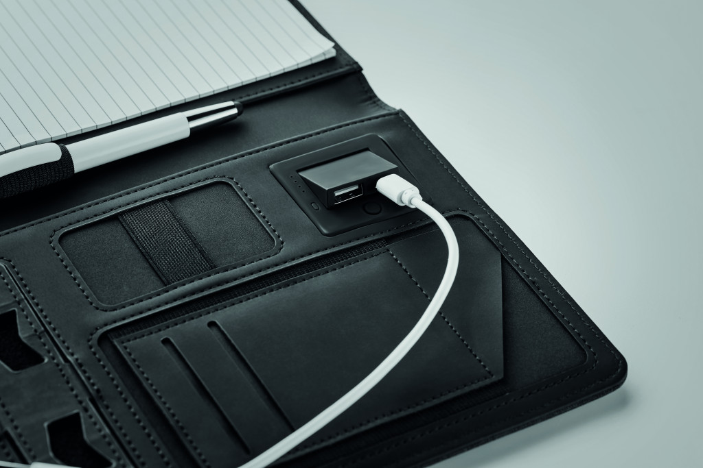 POWERNOTY A5 mappa, 4000 mAh powerbank, fekete