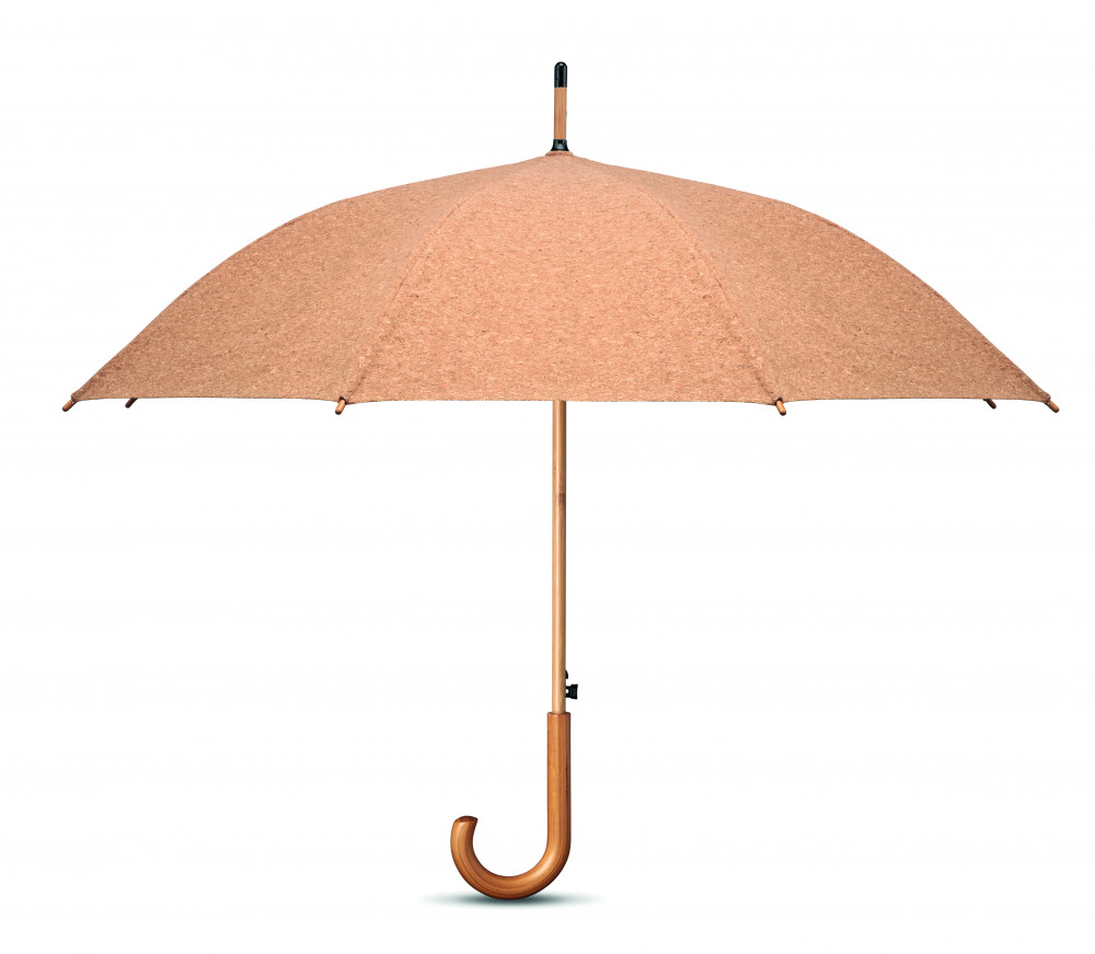 25 colos automatikus nyitású parafa esernyő bambusz rúddal és fa nyéllel, üvegszálas bordákkal. Fekete műanyag cikkelyzáró elemekkel és csúccsal. Kézi záródással. A parafa 100%-ban természetes anyag. Szerkezeti jellege és felületi porozitása miatt az egyes tárgyak végső emblémázási eredménye eltéréseket mutathat.