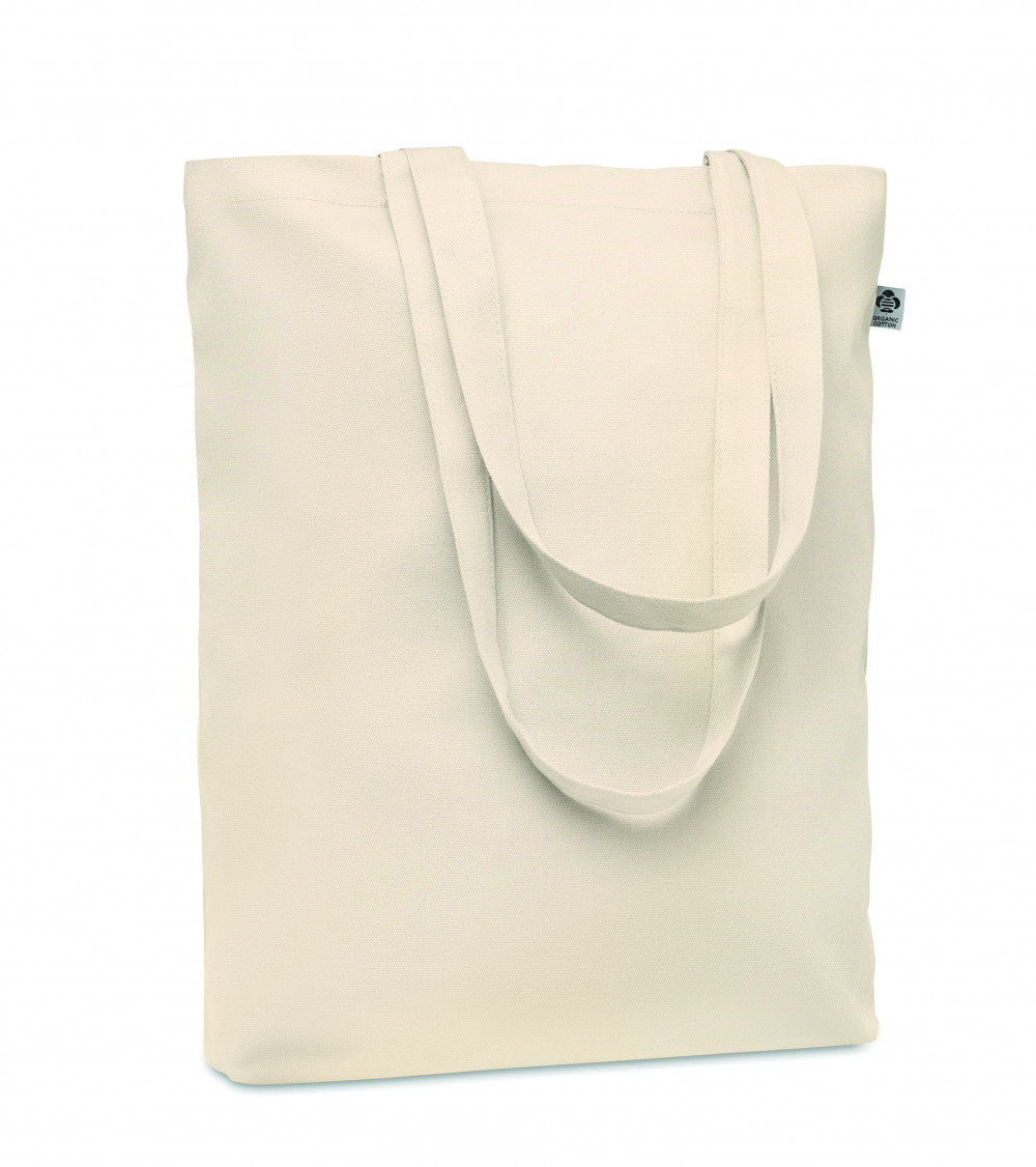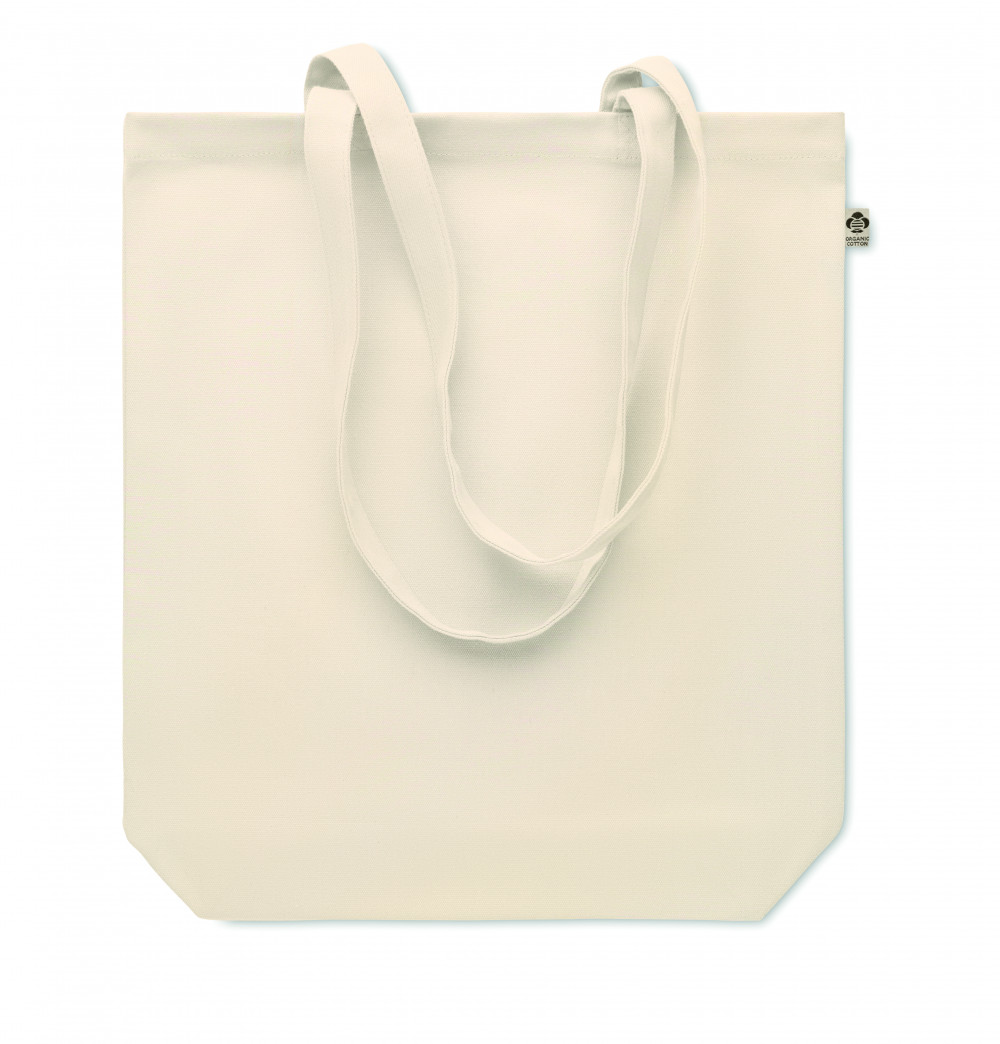 Organikus vászon bevásárlótáska hosszú fülekkel és alsó toldással. 270 g vastag anyag. Ez a termék OEKO-TEX® STANDARD 100 tanúsítvánnyal rendelkezik.