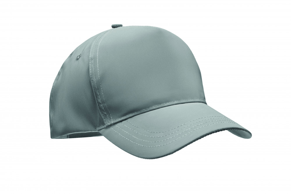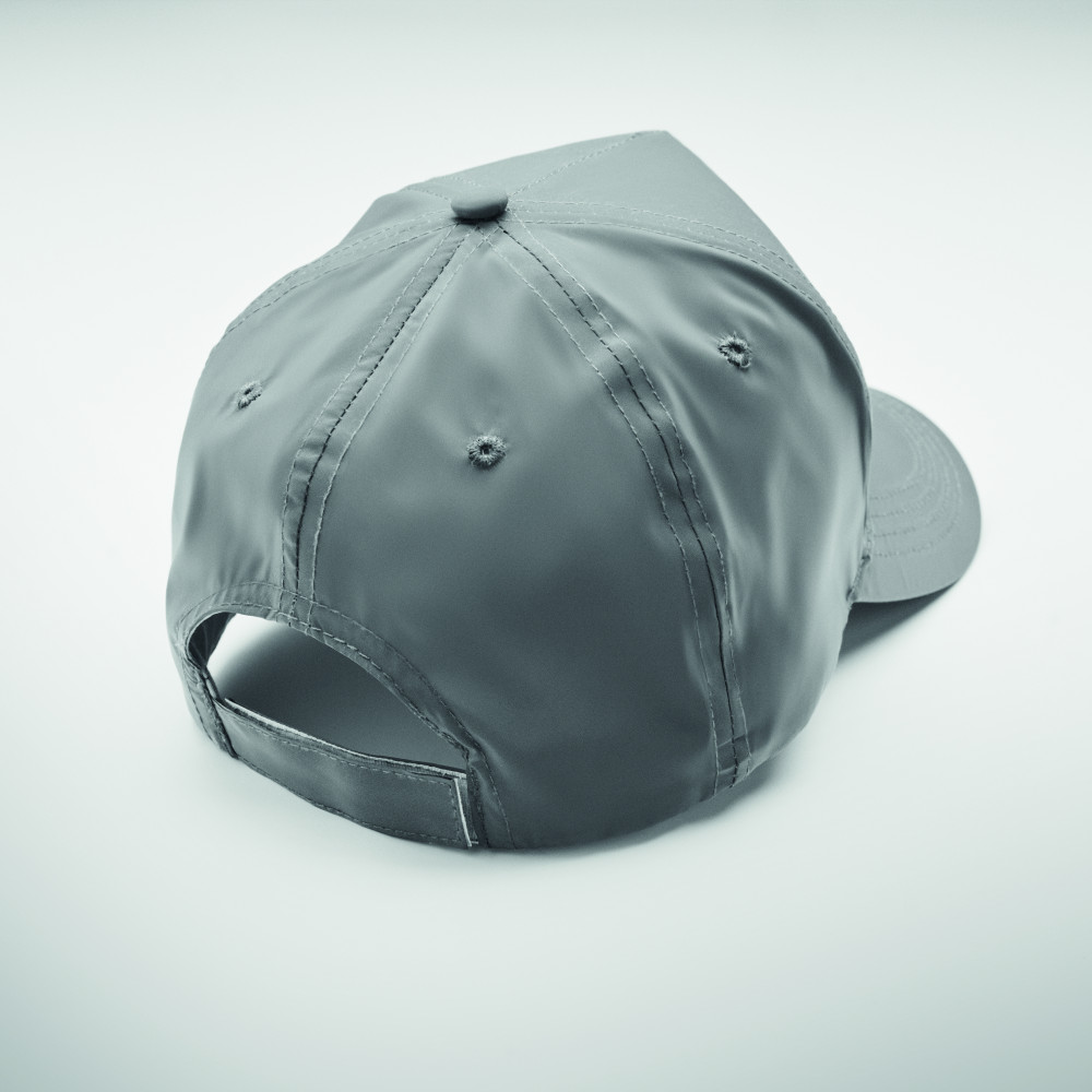 5 paneles baseball sapka magas fényvisszaverő képességű 190T poliészterből. 4 hímzett szellőzőlyukkal, tépőzáras záródással. Méret 7 1/4.