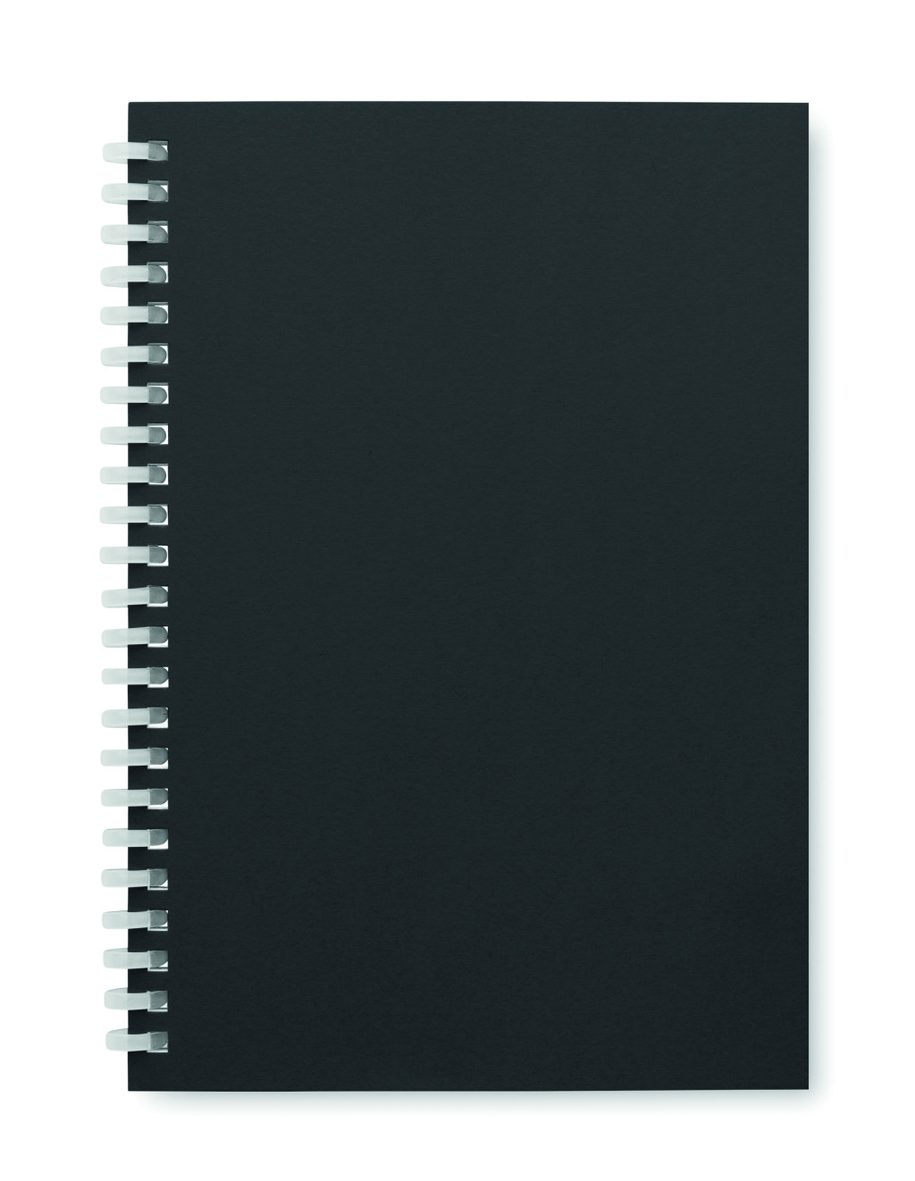 A5, újrahasznosított karton borítójú, puhafedeles, spirálozott jegyzetfüzet. 160 vonalas oldal (80 lap) újrahasznosított papírból. FSC®-certified | FSC MIX CREDIT, P7.1, FSC-C213206