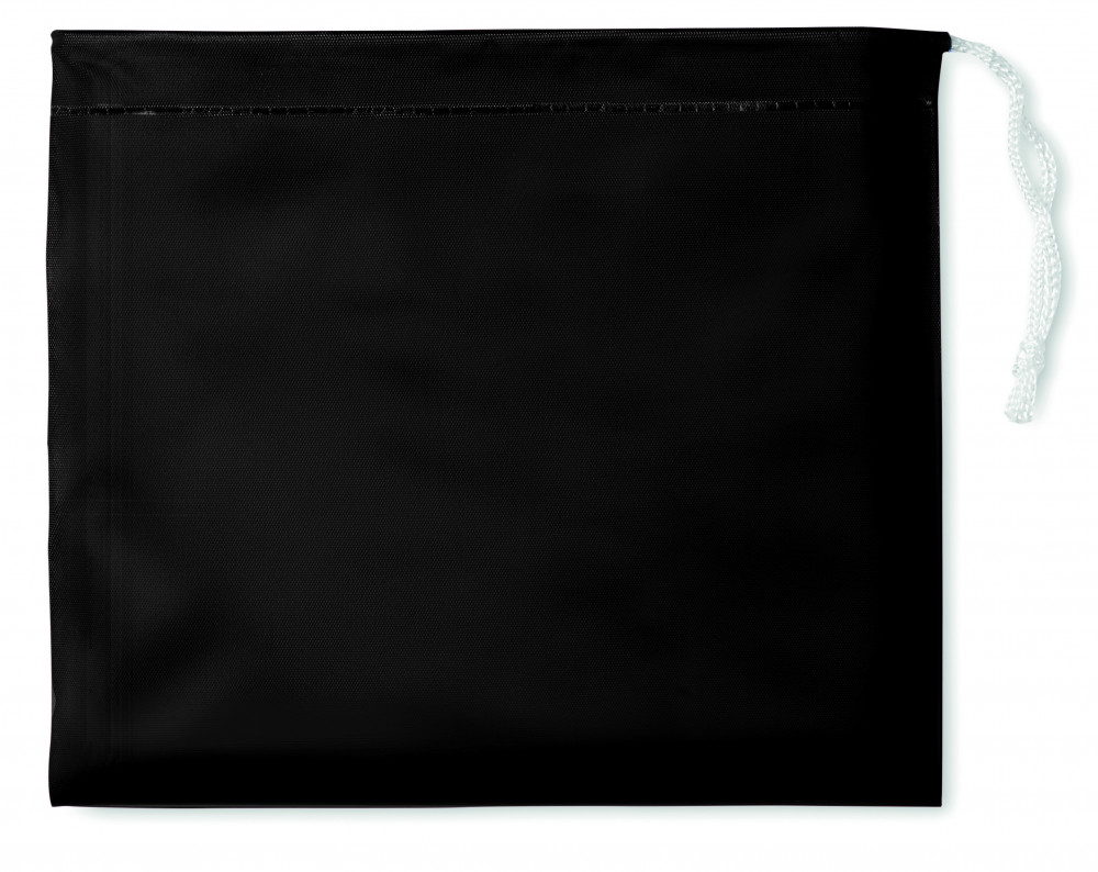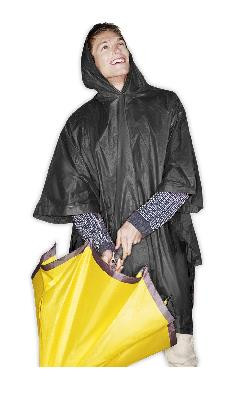 Összehajtható műanyag kapucnis esőkabát tokban.