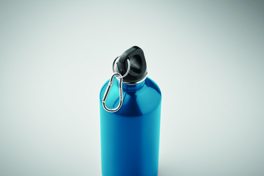 Szimplafalú palack újrahasznosított rozsdamentes acélból (90% újrahasznosított rozsdamentes acél és 10% rozsdamentes acél), karabinerrel. 500 ml. A szublimációs nyomtatás csak a fehér színű terméken érhető el. Szivárgásmentes. Mivel ez egy szimplafalú bögre, hőátadás lehetséges.