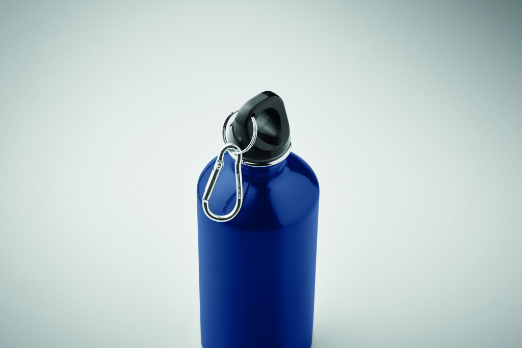 Szimplafalú palack újrahasznosított rozsdamentes acélból (90% újrahasznosított rozsdamentes acél és 10% rozsdamentes acél), karabinerrel. 500 ml. A szublimációs nyomtatás csak a fehér színű terméken érhető el. Szivárgásmentes. Mivel ez egy szimplafalú bögre, hőátadás lehetséges.
