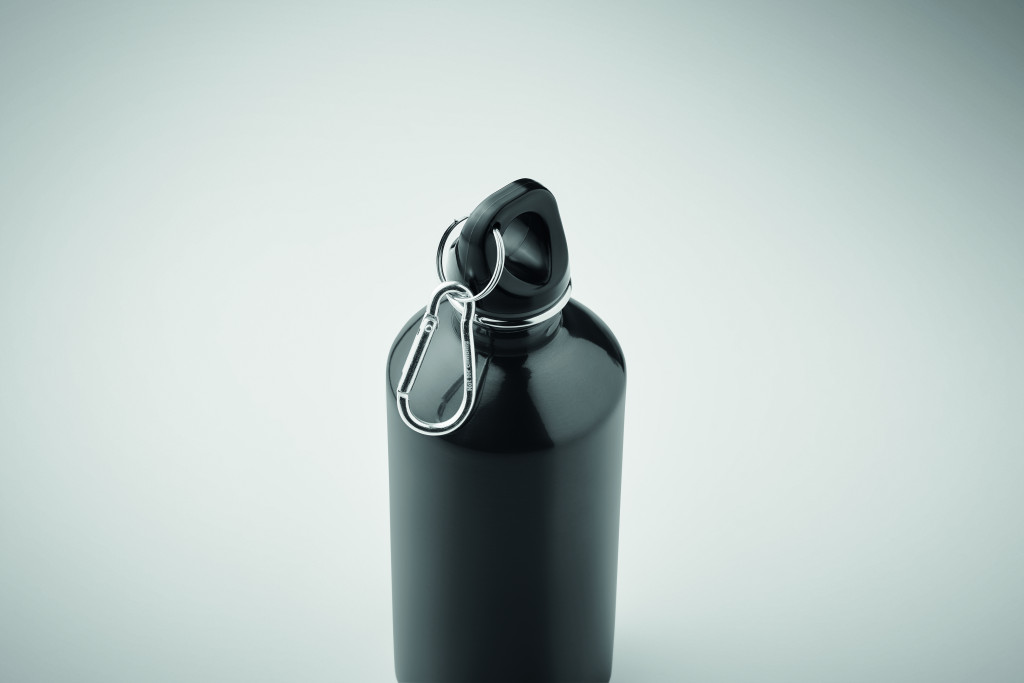 Szimplafalú palack újrahasznosított rozsdamentes acélból (90% újrahasznosított rozsdamentes acél és 10% rozsdamentes acél), karabinerrel. 500 ml. A szublimációs nyomtatás csak a fehér színű terméken érhető el. Szivárgásmentes. Mivel ez egy szimplafalú bögre, hőátadás lehetséges.