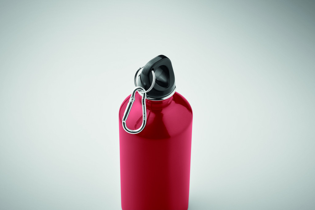Szimplafalú palack újrahasznosított rozsdamentes acélból (90% újrahasznosított rozsdamentes acél és 10% rozsdamentes acél), karabinerrel. 500 ml. A szublimációs nyomtatás csak a fehér színű terméken érhető el. Szivárgásmentes. Mivel ez egy szimplafalú bögre, hőátadás lehetséges.