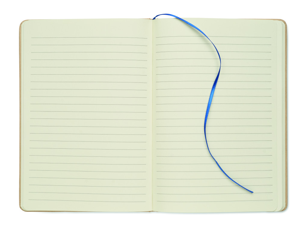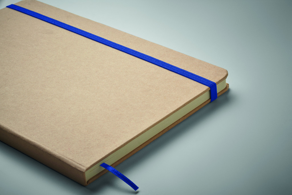 A5 jegyzetfüzet keménytáblás, újrahasznosított karton borítóval. Cérnafűzött. 160 vonalas oldal (80 lap) újrahasznosított papírból. Elasztikus zárópánt és könyvjelző szalag, melyek színe a gravírozás után, a bézs borító réteg alól megjelenő színhez illeszkedik. FSC®-certified | FSC MIX CREDIT, P7.1, FSC-C213206