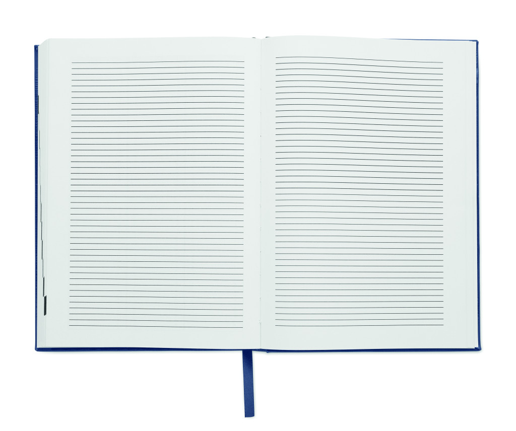 A5, napi beosztású öröknaptár, 60% fogyasztás utáni újrahasznosított poliészter és 40% PU borítóval. 416 univerzális oldal (208 lap) 70 g/m² újrahasznosított papírból. Illeszkedő színű poliészter könyvjelző szalag.