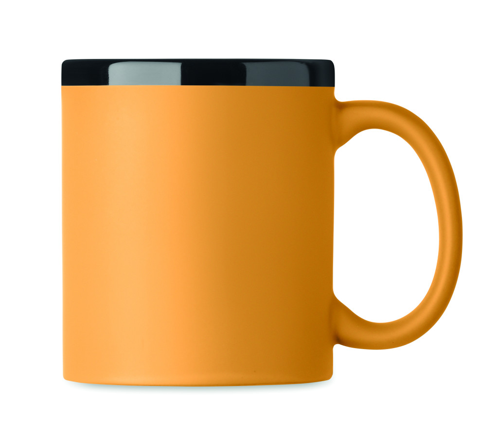 Kerámia bögre selymes tapintású külső bevonattal lézergravírozáshoz és fekete belső oldallal, illetve peremmel. Űrtartalom: 300 ml. Egyesével, fehér kartondobozba csomagolva.