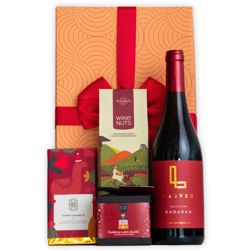 A "Red Wine Wonders" csomag tökéletes választás azoknak, akik szeretik a gazdag, testes vörösborokat. A sós karamellás tejcsokoládé és az étcsokoládéval bevont áfonyaszemek kísérik a Lajvér Kadarka borát, míg a borokhoz illő magkeverék teszi teljessé az élményt.