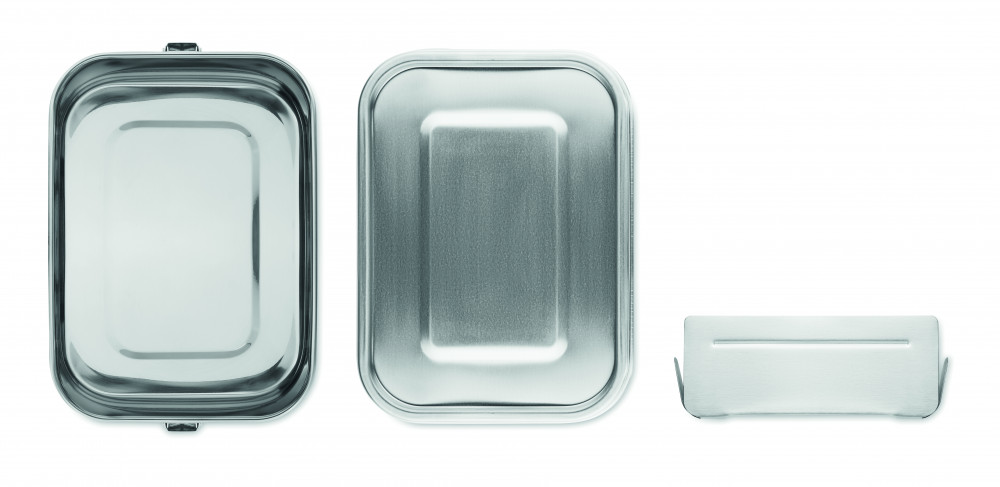 Rozsdamentes acélból készült uzsonnásdoboz erős és biztonságos oldalsó csatokkal. Belső elválasztóval. Űrtartalom: 1200 ml.
