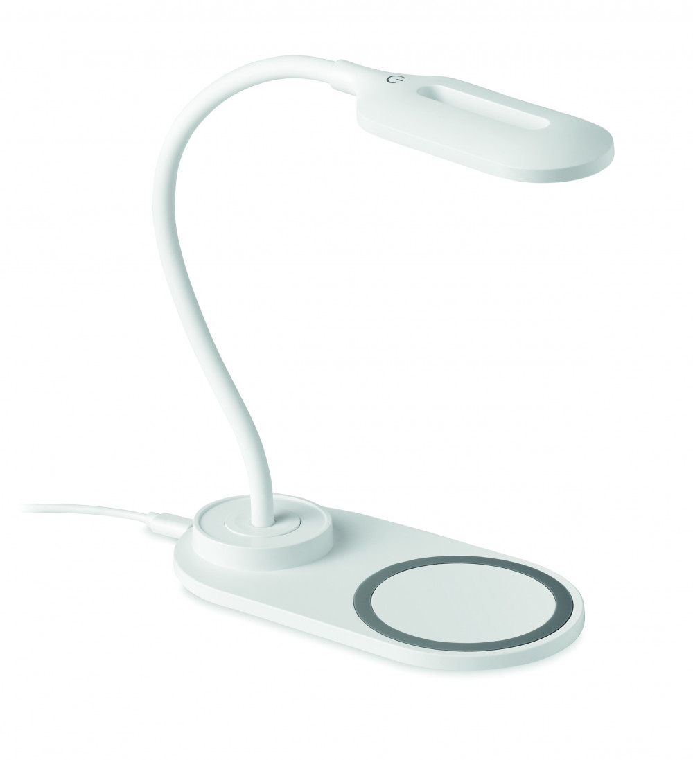 ABS műanyagból készült asztali lámpa 10 LED fénnyel és 10W-os vezeték nélküli töltővel. Érintőszenzoros. Teljesítmény: DC 9V/1.1A (10W) a gyorstöltéshez.