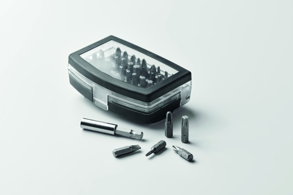 32 darabos csavarhúzó bitfej készlet adapterrel.
