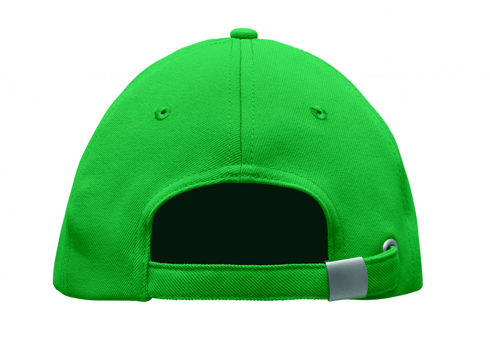 5 paneles baseball sapka 210 g vastag RPET poliészterből, ezüst színű acél csattal. 4 hímzett, színben illeszkedő szellőzőlyukkal. Méret 7 1/4.