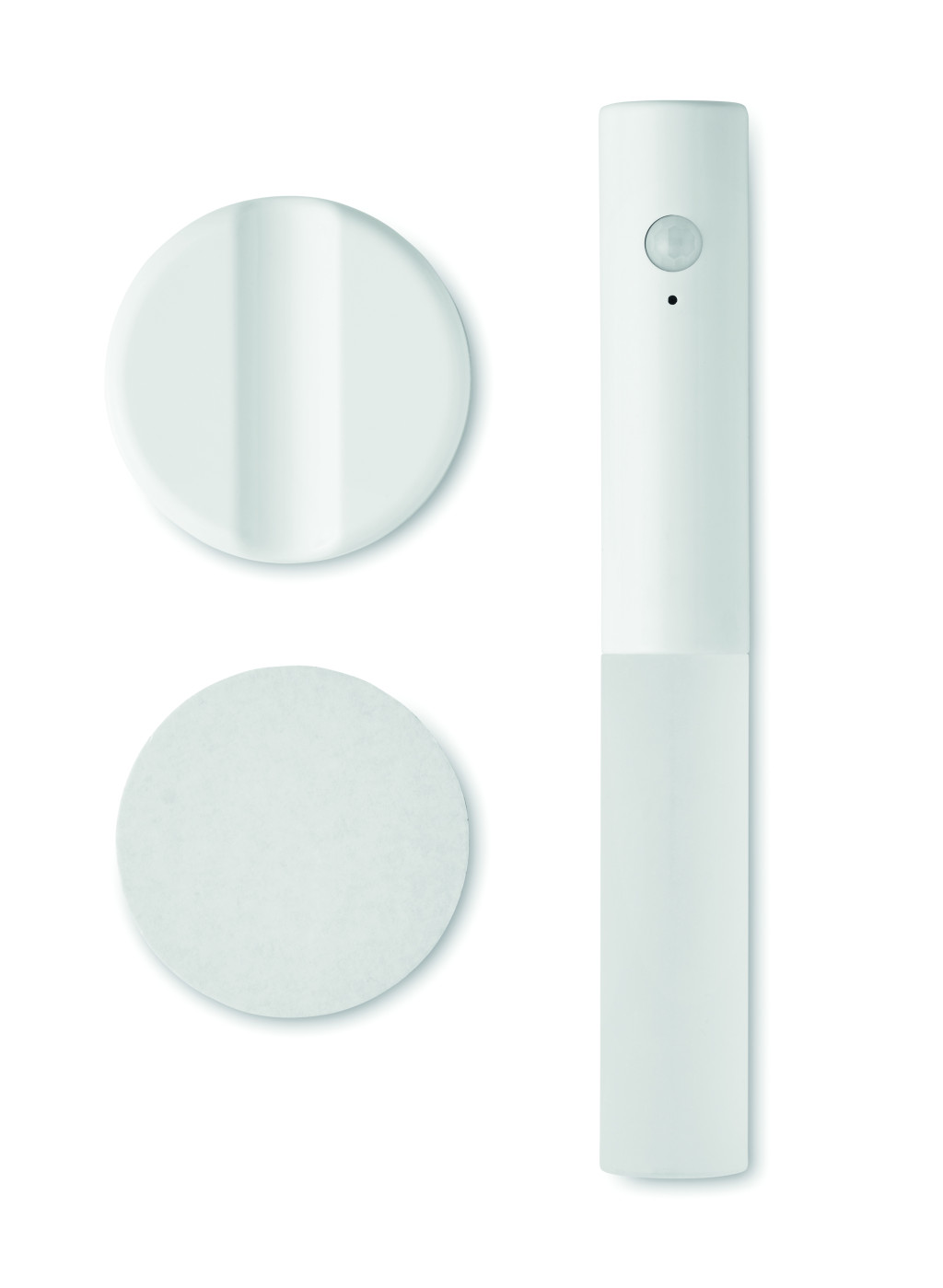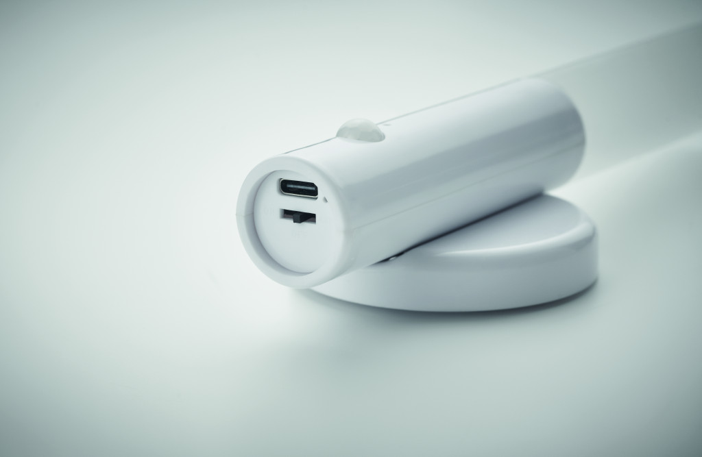Vészhelyzeti és/vagy mozgásérzékelős, rögzíthető zseblámpa ABS-ből és akrilból, mágneses tartóval. Beépített 300 mAh-s újratölthető akkumulátorral és töltőkábellel. A tartó a mellékelt 3M matricával falra rögzíthető.
