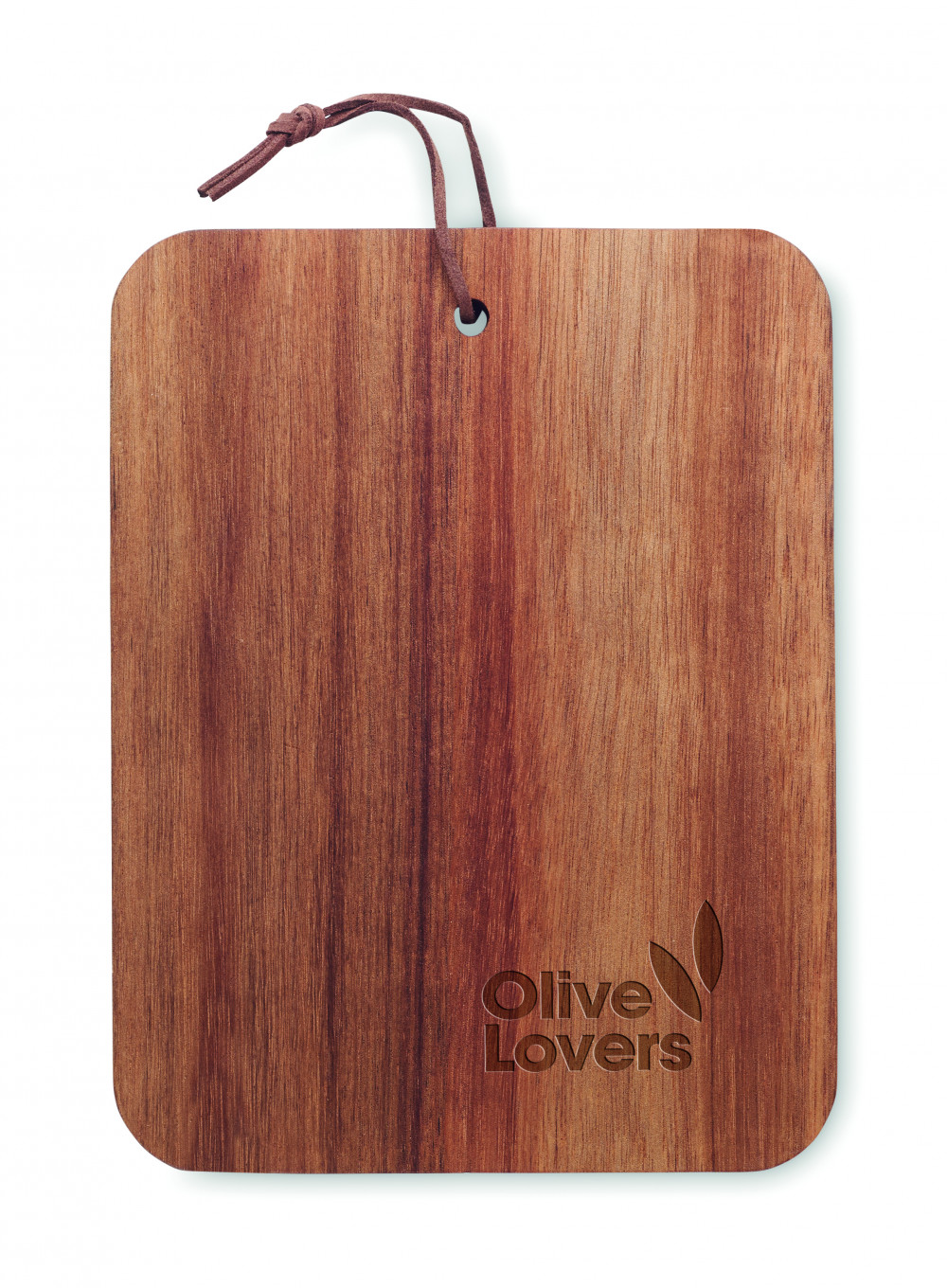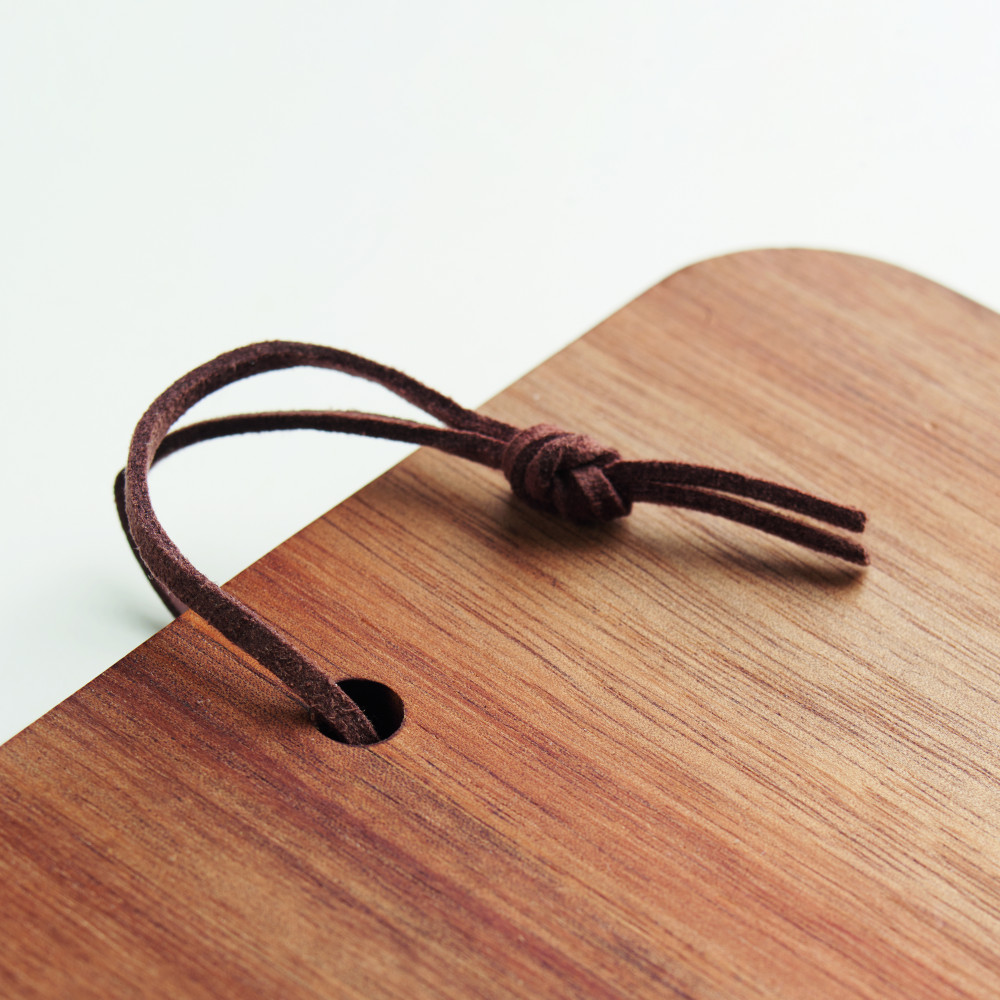 Akáciafa vágódeszka PU zsinórral. A fa természetes anyag, termékenként szín- és méretbeli eltérések jelentkezhetnek, ami befolyásolhatja a dekoráció végső eredményét.