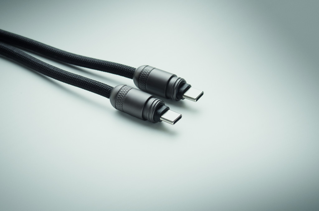 60 W-os, C-típusról C-típusúra töltő- és adatátviteli kábel RPET-ből, zsinóros telefontartóval.