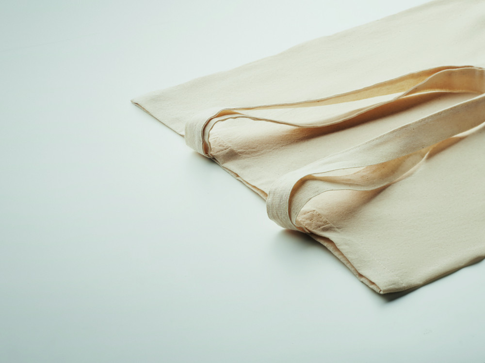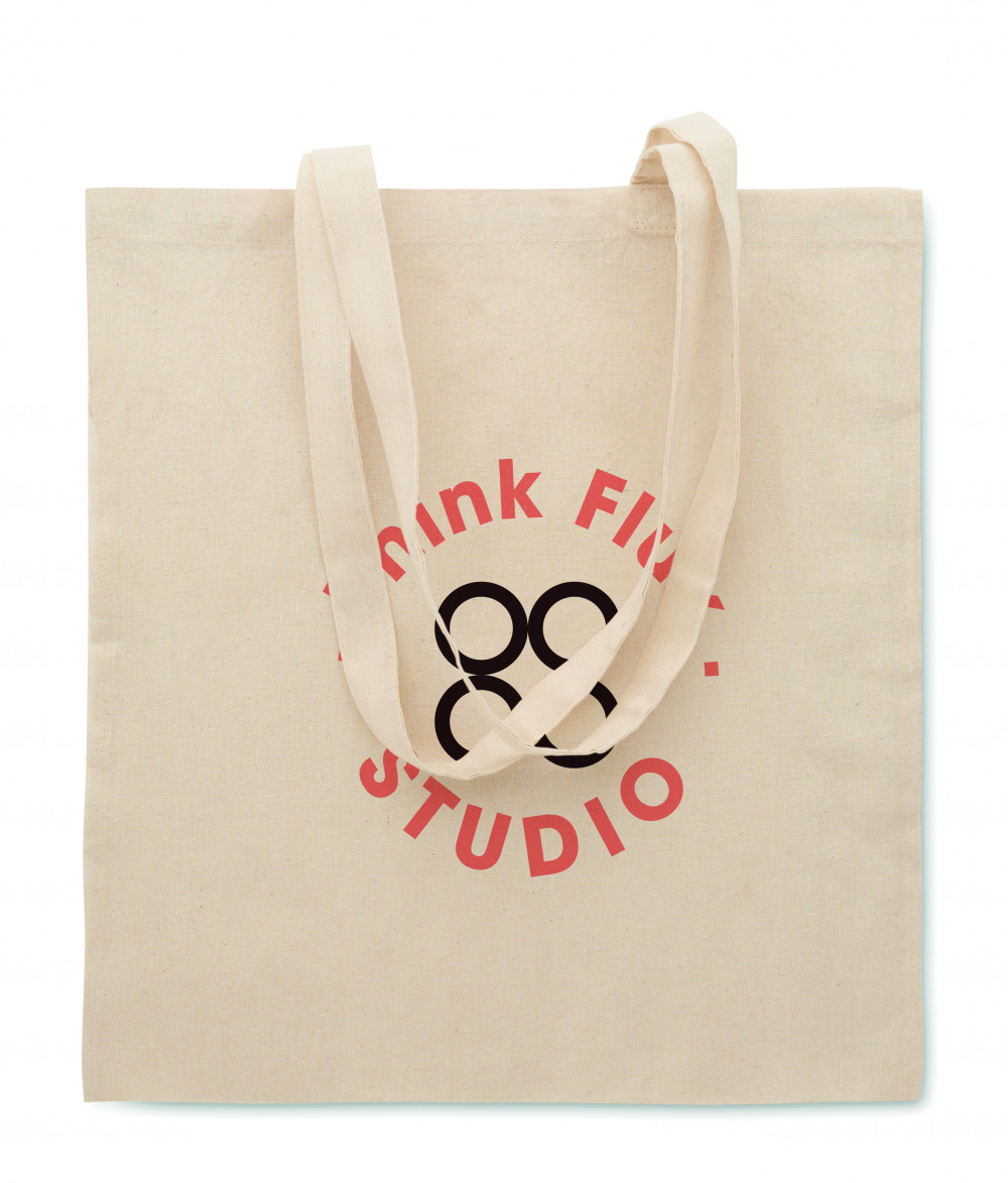 Poliészter és pamut kevert szálas bevásárlótáska hosszú fülekkel. 130 g/m².
