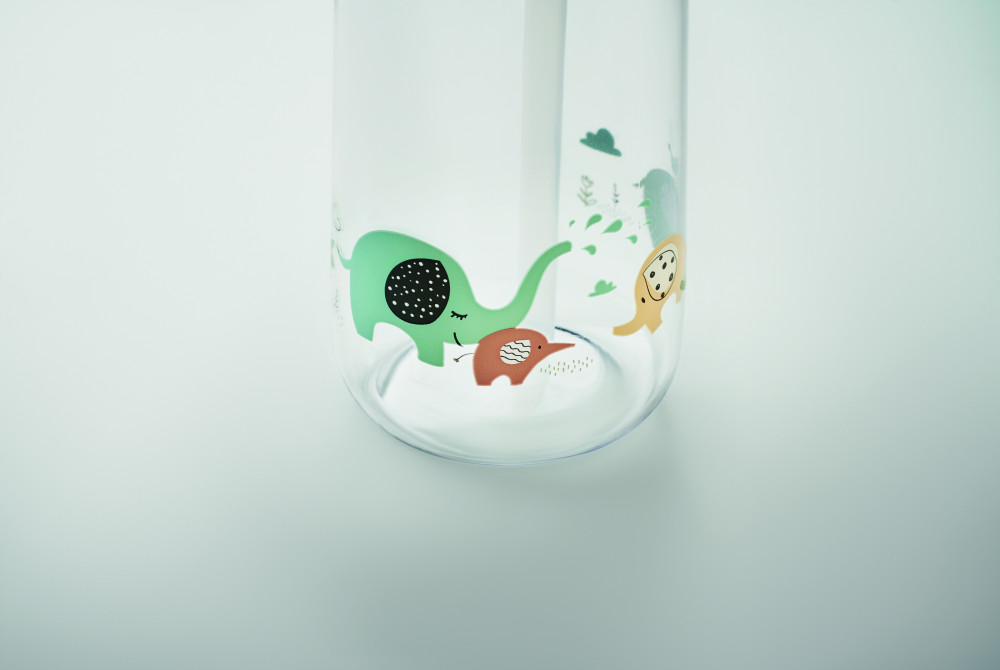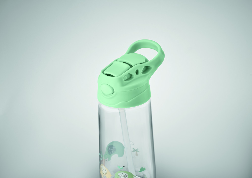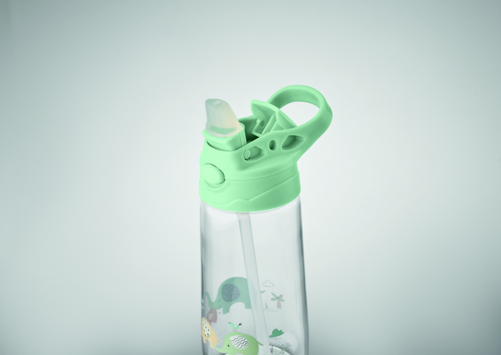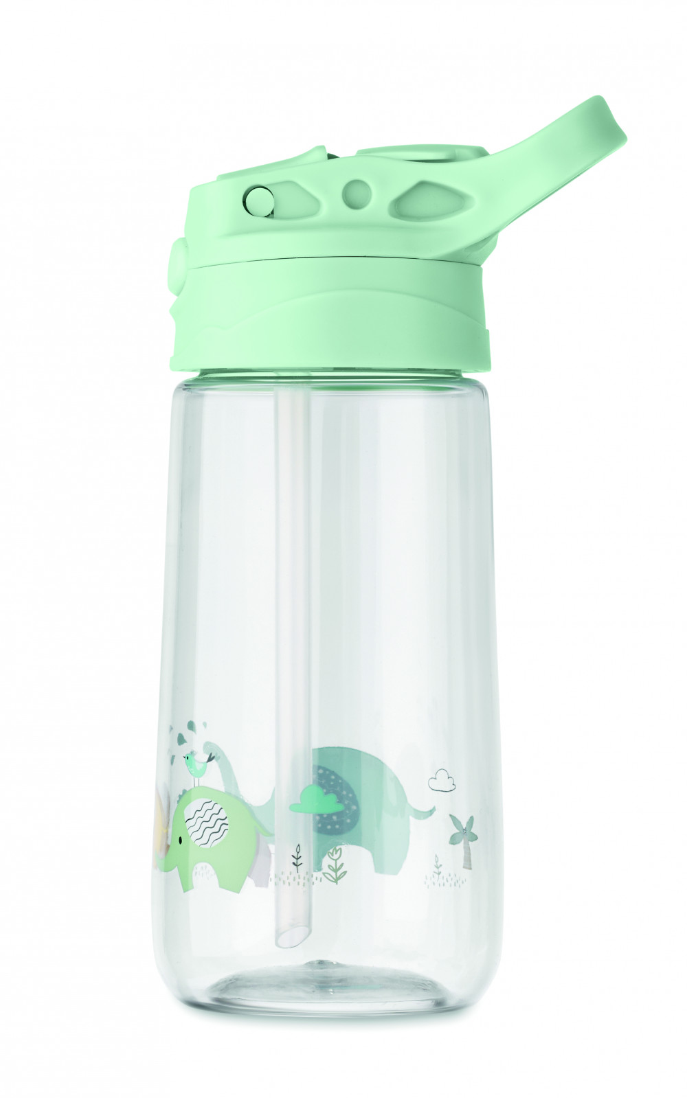 Mintás gyermek ivópalack Tritan™ műanyagból, beépített szívószálas fedéllel. Szivárgásmentes. Űrtartalom: 450 ml.